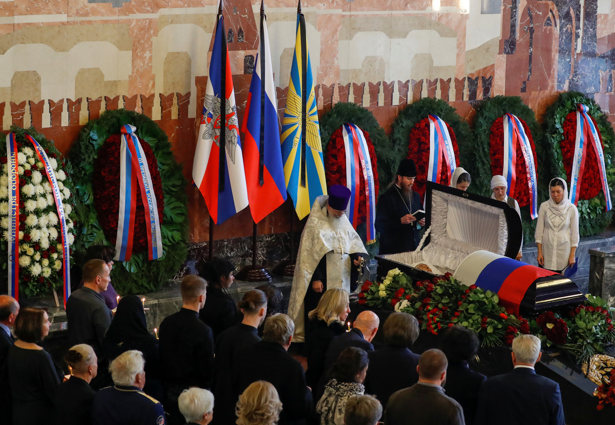 People attend a mourning ceremony and a funeral for Alexei Leonov, the first man to conduct a space walk in 1965, in Mytishchi, outside Moscow, Russia October 15, 2019. REUTERS/Evgenia NovozheninaRussian cosmonaut Valentina Tereshkova, the first woman cosmonaut, and former Apollo spacecraft commander Thomas Stafford attend a mourning ceremony and a funeral for Alexei Leonov, the first man to conduct a space walk in 1965, in Mytishchi, outside Moscow, Russia October 15, 2019. REUTERS/Evgenia NovozheninaRussian Defence Minister Sergei Shoigu attends a mourning ceremony and a funeral for Alexei Leonov, the first man to conduct a space walk in 1965, in Mytishchi, outside Moscow, Russia October 15, 2019. REUTERS/Evgenia Novozhenina