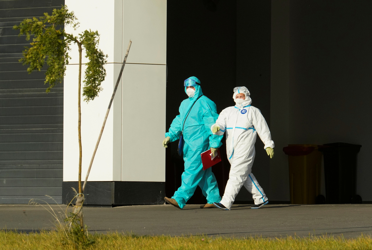 Medical specialists wearing protective gear walk outside a hospital for patients infected with the coronavirus disease (COVID-19) on the outskirts of Moscow, Russia October 2, 2020. REUTERS/Tatyana Makeyeva