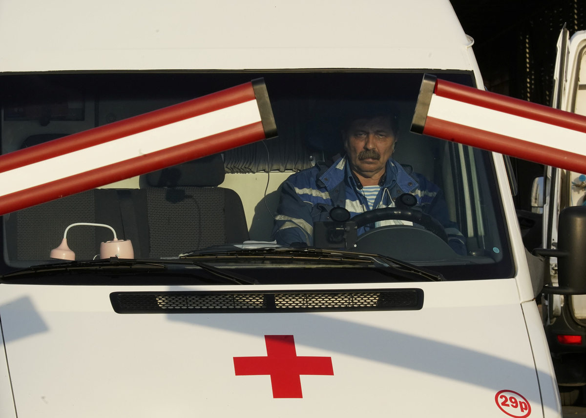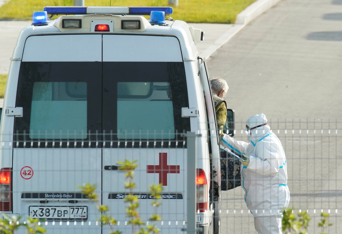 A person gets out of an ambulance upon the arrival at a hospital for patients infected with the coronavirus disease (COVID-19) on the outskirts of Moscow, Russia October 2, 2020. REUTERS/Tatyana MakeyevaA medical specialist wearing protective gear walks next to an ambulance outside a hospital for patients infected with the coronavirus disease (COVID-19) on the outskirts of Moscow, Russia October 2, 2020. REUTERS/Tatyana MakeyevaA driver is seen inside an ambulance at the territory of a hospital for patients infected with the coronavirus disease (COVID-19) on the outskirts of Moscow, Russia October 2, 2020. REUTERS/Tatyana Makeyeva