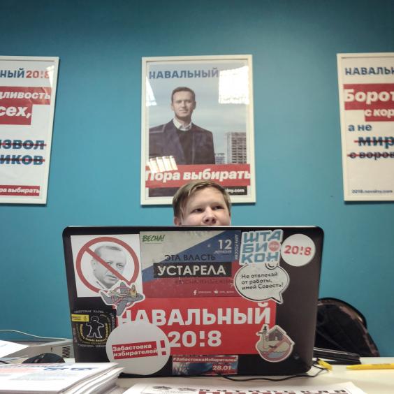 As we talk, the pair conduct interviews with two would-be election observers — a 15-year-old and 16-year-old. Shy and nervous, they say they were radicalised by Navalny’s videos showing the alleged corruption of the country’s leaders. All of their friends had seen the videos too. Not all of them are on his side, one admits. Some still prefer Pavel Grudinin, the moustachioed Communist Party candidate.