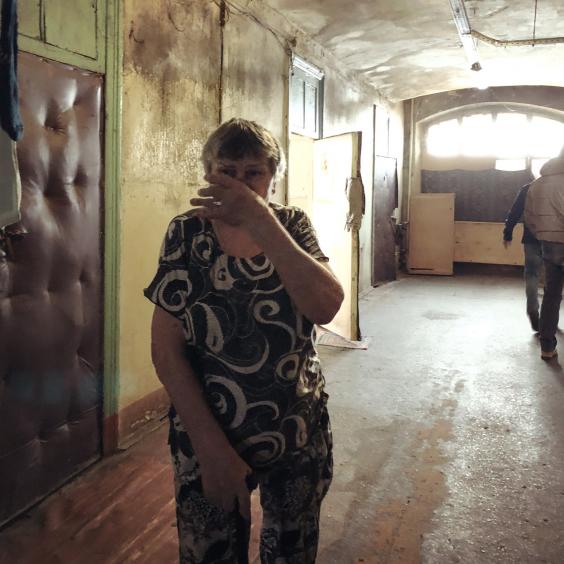 The eldest resident, Maria Panasova, 82, is one of two left on the condemned third floor. An order to rehouse Grandma Masha came nearly five years ago, but hasn’t yet been acted upon. She limps with her walking stick to greet us.