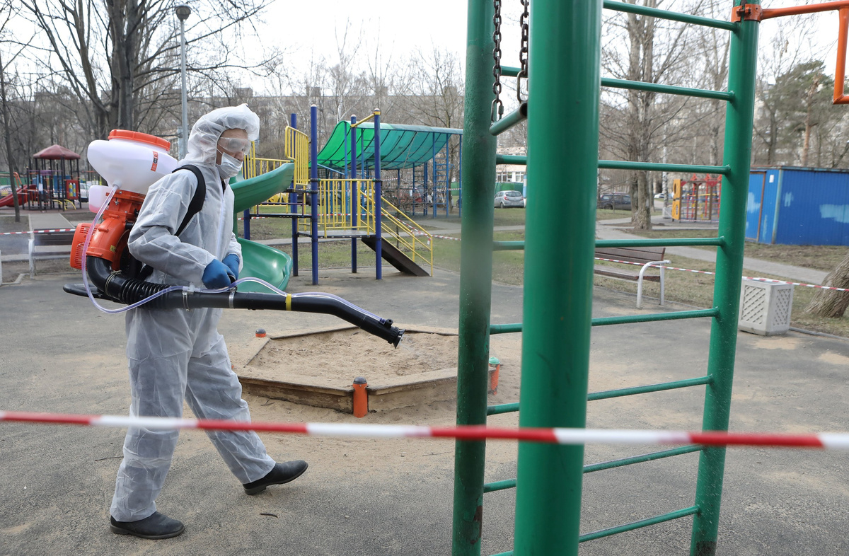 A health worker wearing protective gear is seen at Gemotest laboratory, which performs tests for the coronavirus disease (COVID-19), in Moscow, Russia April 6, 2020. REUTERS/Evgenia NovozheninaA health worker wearing protective gloves holds samples taken for testing for the coronavirus disease (COVID-19) at Gemotest laboratory in Moscow, Russia April 6, 2020. REUTERS/Evgenia NovozheninaA specialist wearing protective gear sprays disinfectant while sanitizing a playground to prevent the spread of the coronavirus disease (COVID-19) in Moscow, Russia April 5, 2020. Sofya Sandurskaya/Moscow News Agency/Handout via REUTERS