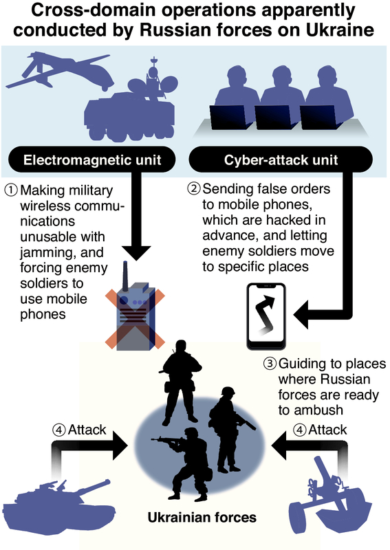 "That is absolutely a cross-domain battle, isn't it?" Jiro Hiroe, director general of the C4 Systems and Intelligence Department of the Ground Self-Defense Force Staff Office said, "It was a battle that fused together the use of electromagnetic waves, cyber operations, and on-the-ground firepower."
