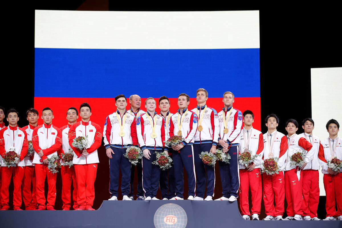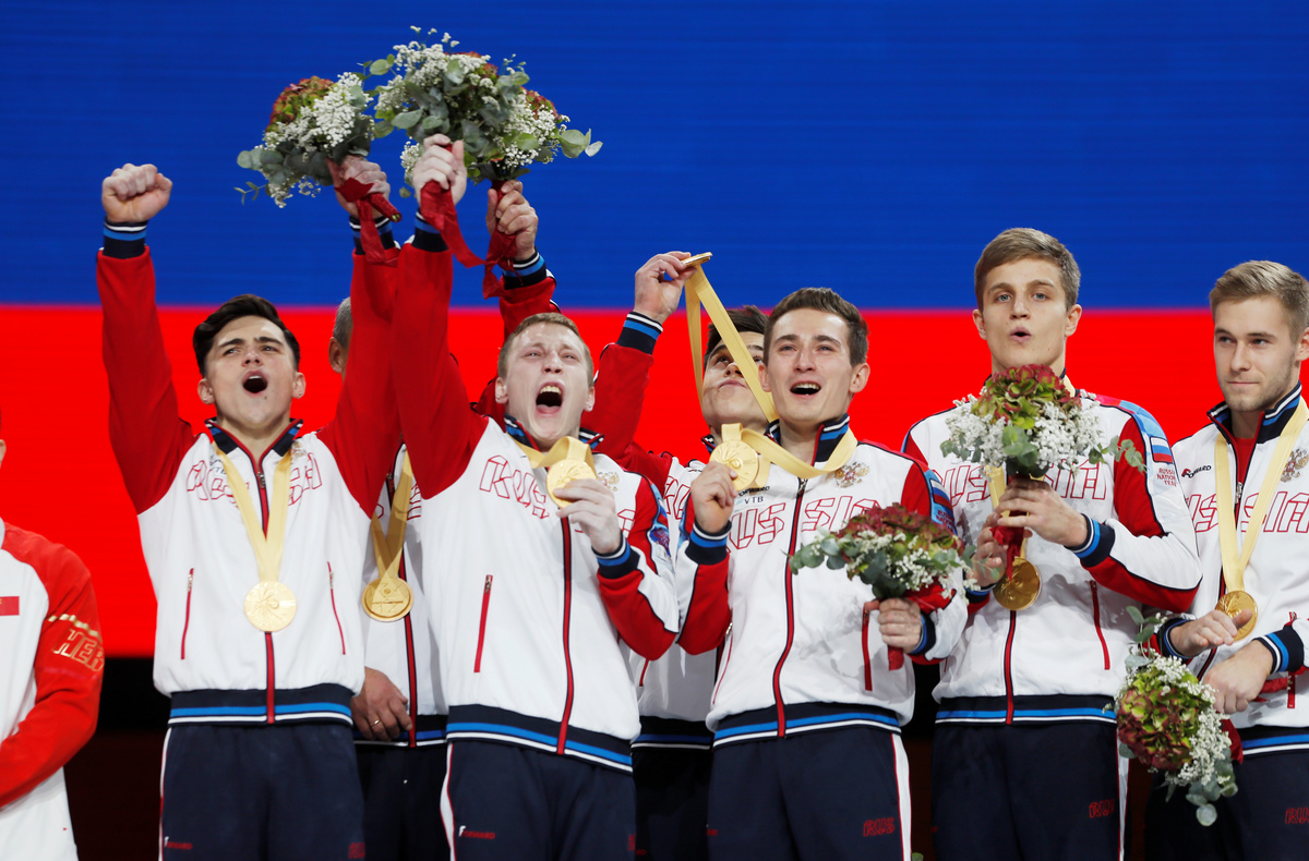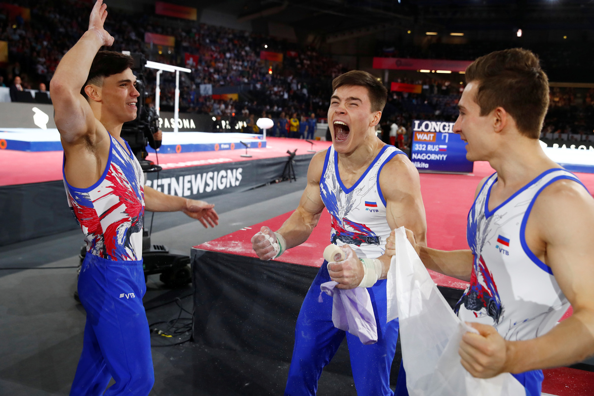 Last year in Doha, Russia were beaten to the title by China by a slim margin of 0.049 points but there were no mistakes this time as European all-around champion Nikita Nagornyy closed out the victory.