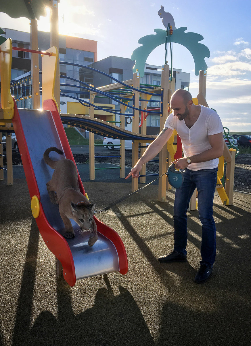 Messi, a two-year-eight-month-old cougar, lives with Maria and Aleksandr Dmitriev in a one-bedroom apartment in the Russian city of Penza, not in a very different environment from any other pet cat or a dog in the country.