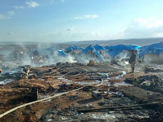 Images of the aftermath of the bombing showed tents burned to the ground, charred bodies, and bloodied women and children being loaded on to a lorry.