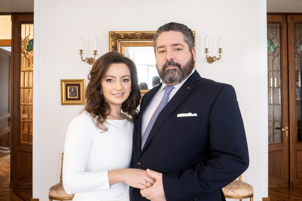 Grand Duke of Russia George Romanov and his fiancee Rebecca Bettarini pose for a picture in Moscow, Russia, in this undated handout photo. Grand Duke George, the Head of the Russian Imperial House Grand Duchess Maria's son, will marry his Italian fiancee on October 1, 2021 as the country's first royal wedding since the Russian Revolution of 1917 will take place in the city of St Petersburg which used to be the capital of the Russian Empire. Russian Imperial Foundation/Handout via REUTERS