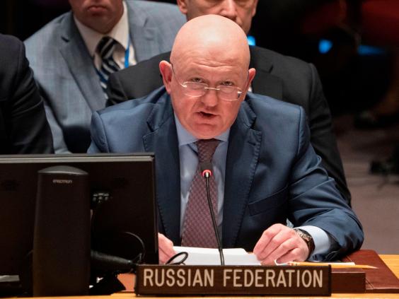 Mr Nebenzia dismissed claims the Syrian regime had used chemical weapons as “fake news” as he called for inspectors from the Organisation for the Prohibition of Chemical Weapons (OPCW) to fly to Syria on Tuesday to visit the site of the alleged attack.