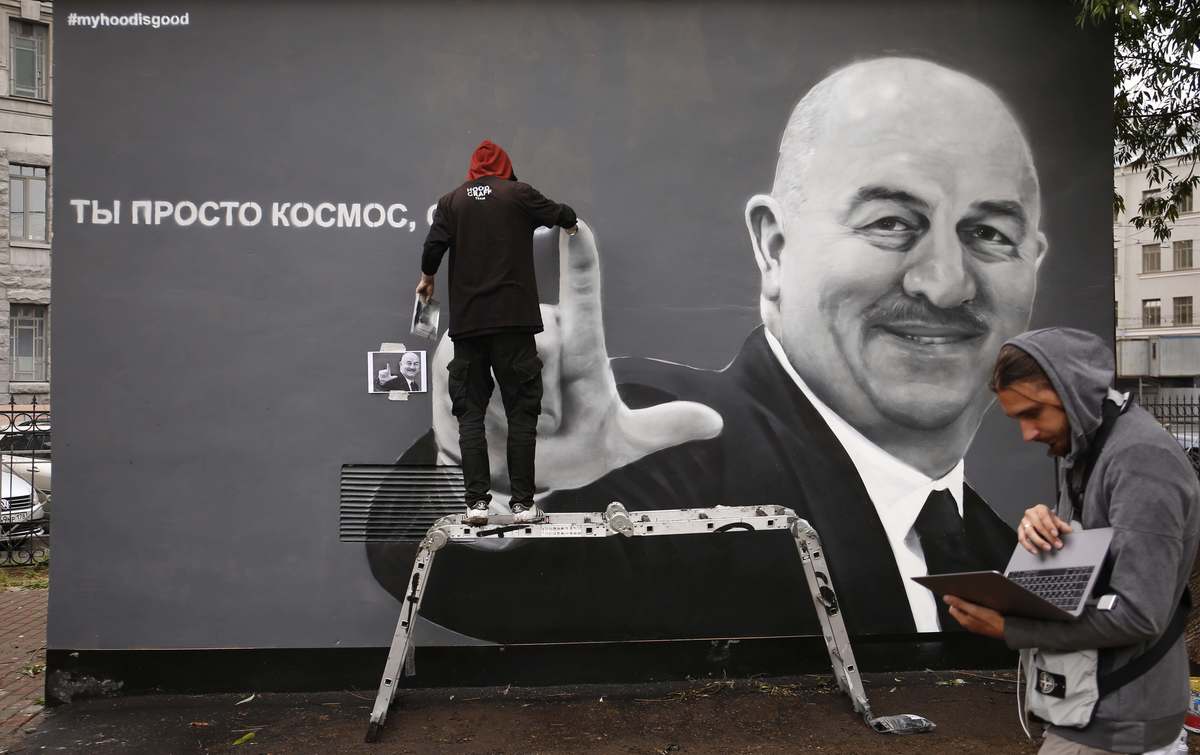 After Tuesday's 3-1 win over Egypt in St. Petersburg, his familiar moustachioed features appeared at a city intersection, spray-painted across a wall.