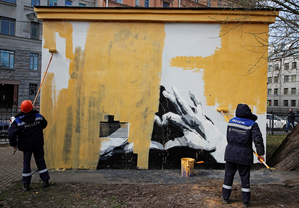 Russian authorities rapidly painted over a large mural of jailed opposition politician Alexei Navalny on Wednesday after it appeared overnight on a building in central St Petersburg.