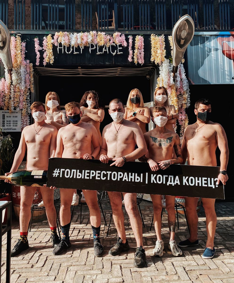 Russian restaurant owners stripped of their income by the coronavirus lockdown are campaigning for their businesses to be allowed to reopen by posting pictures of themselves naked on social media.