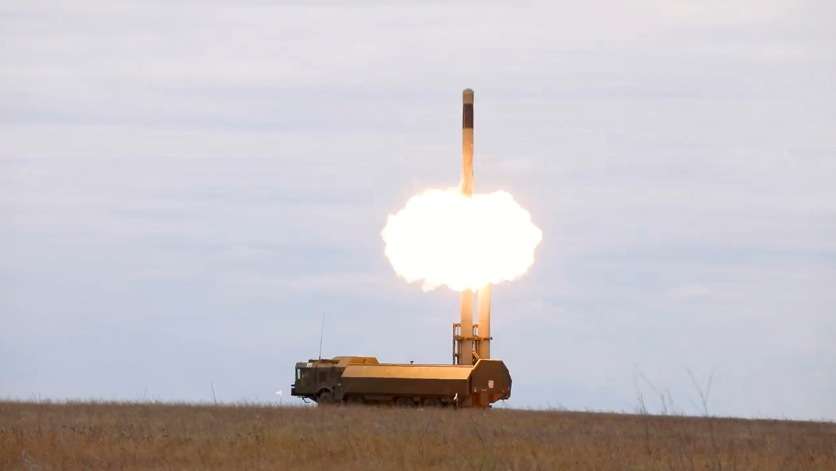 Divisions were shown carrying out strikes with truck-mounted missiles in video footage released by the Defence Ministry. Crews fired from concealed positions and used drones to track a simulated enemy group of ships, it said.