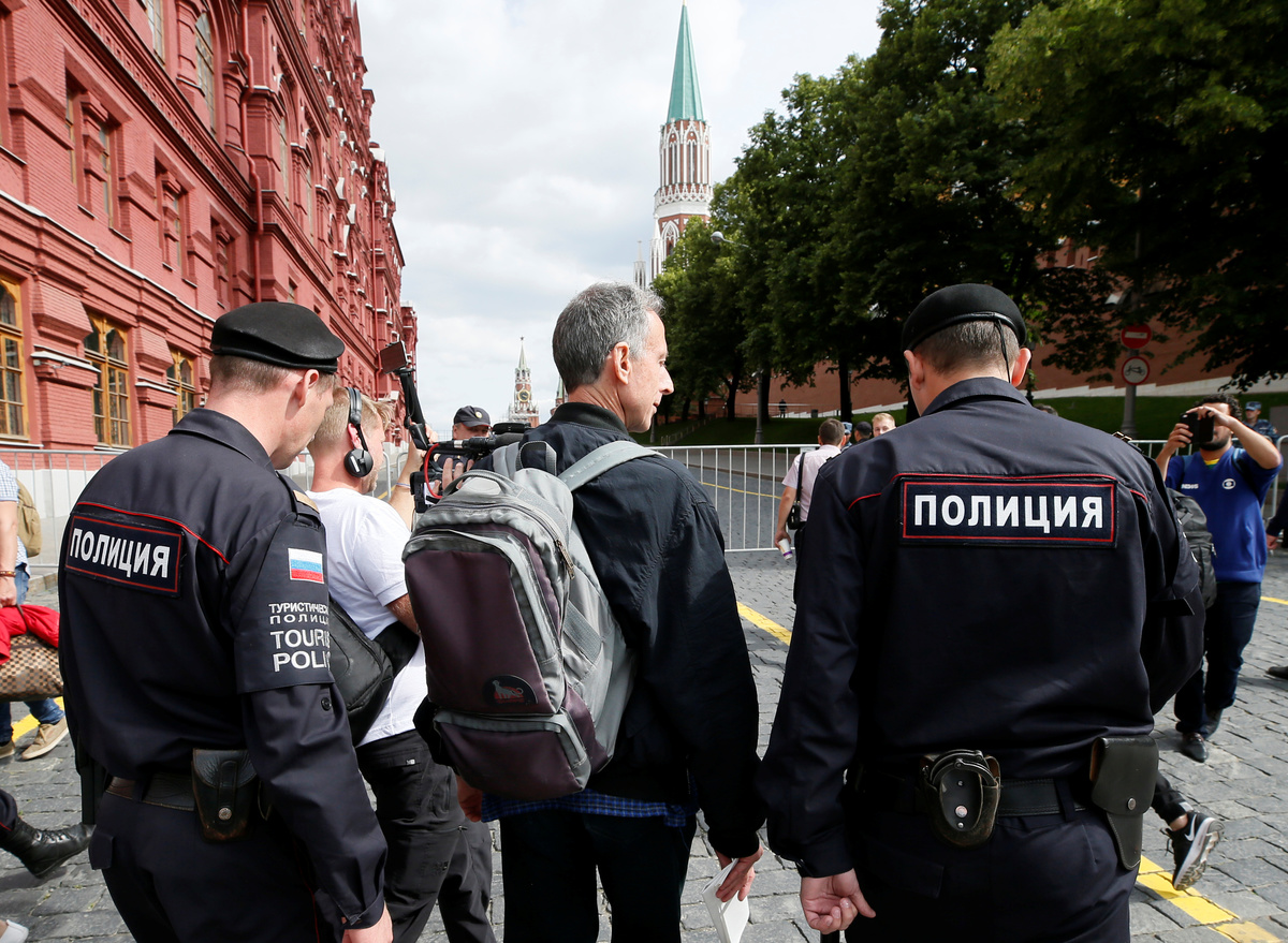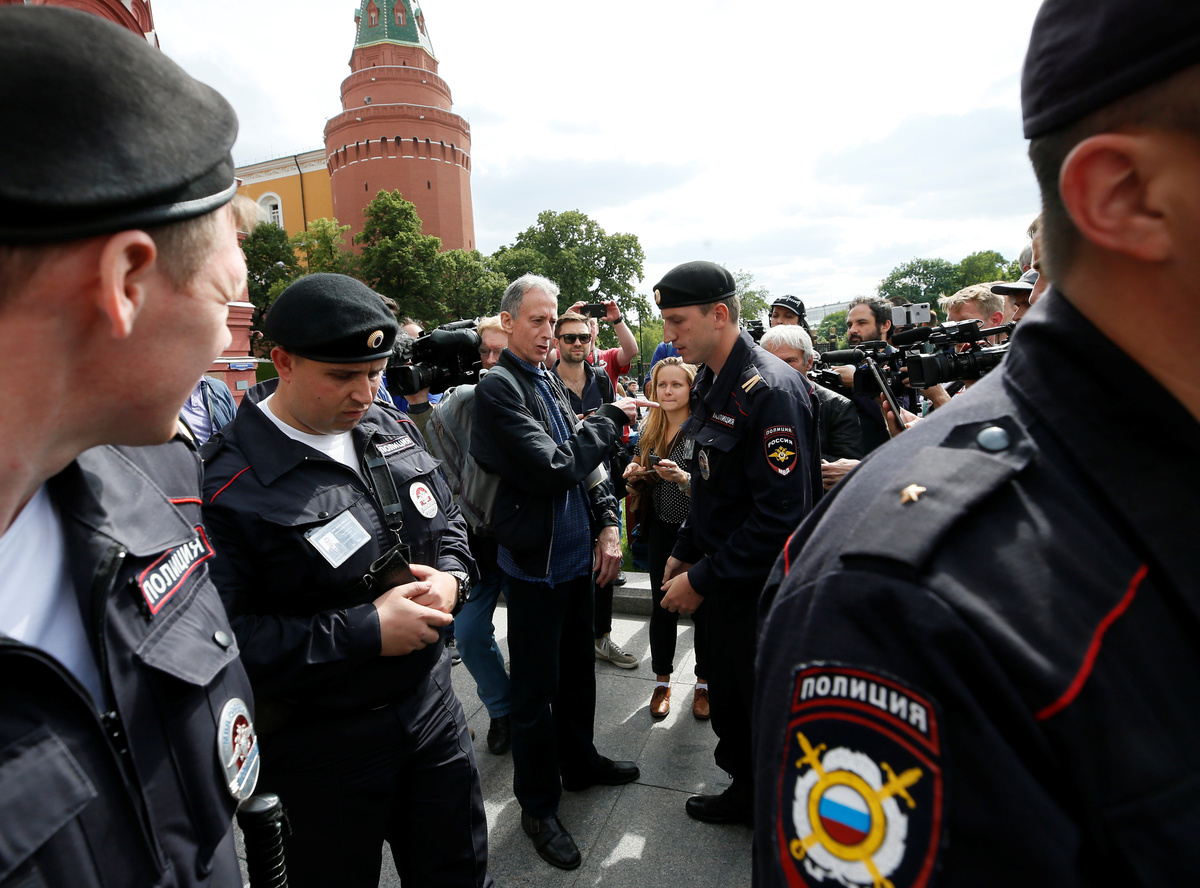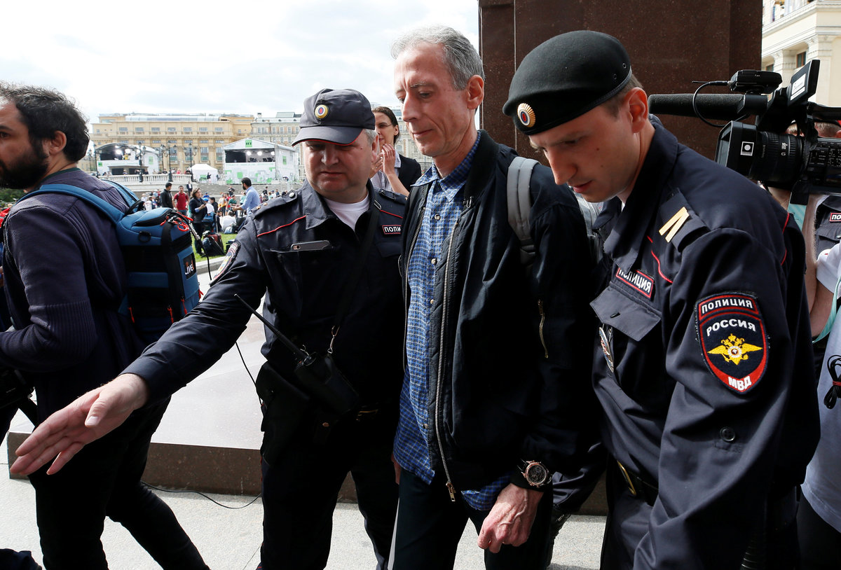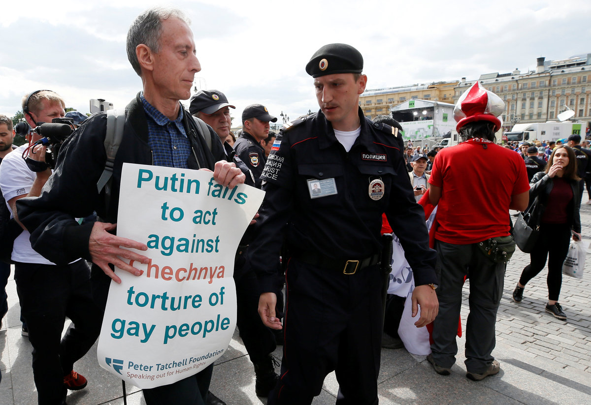 MOSCOW (Reuters) - Russian police briefly detained veteran British campaigner Peter Tatchell in Moscow on Thursday after he attempted to hold a one-man protest near the Kremlin in support of gay rights on the first day of the World Cup.