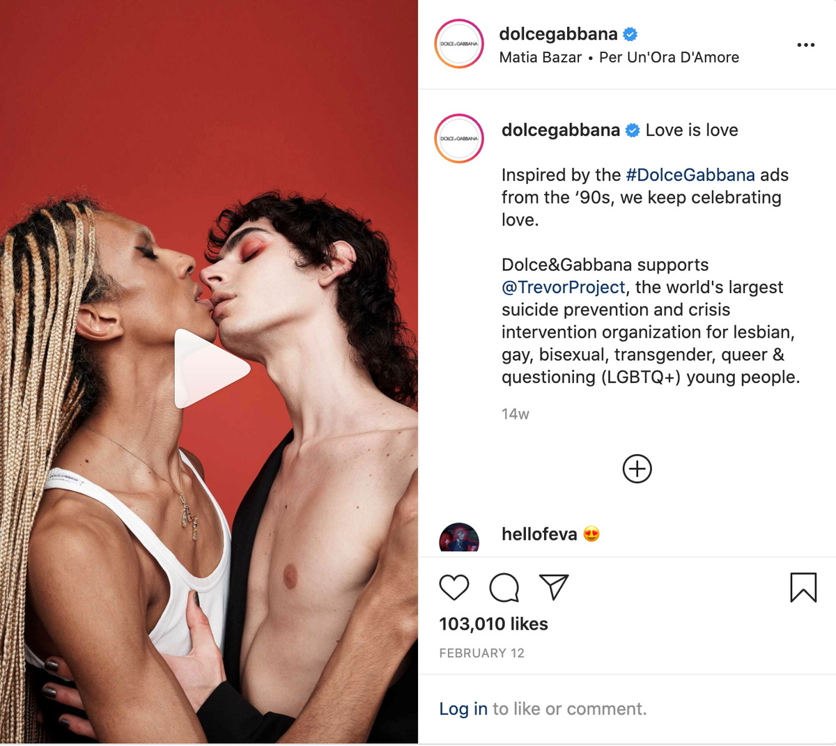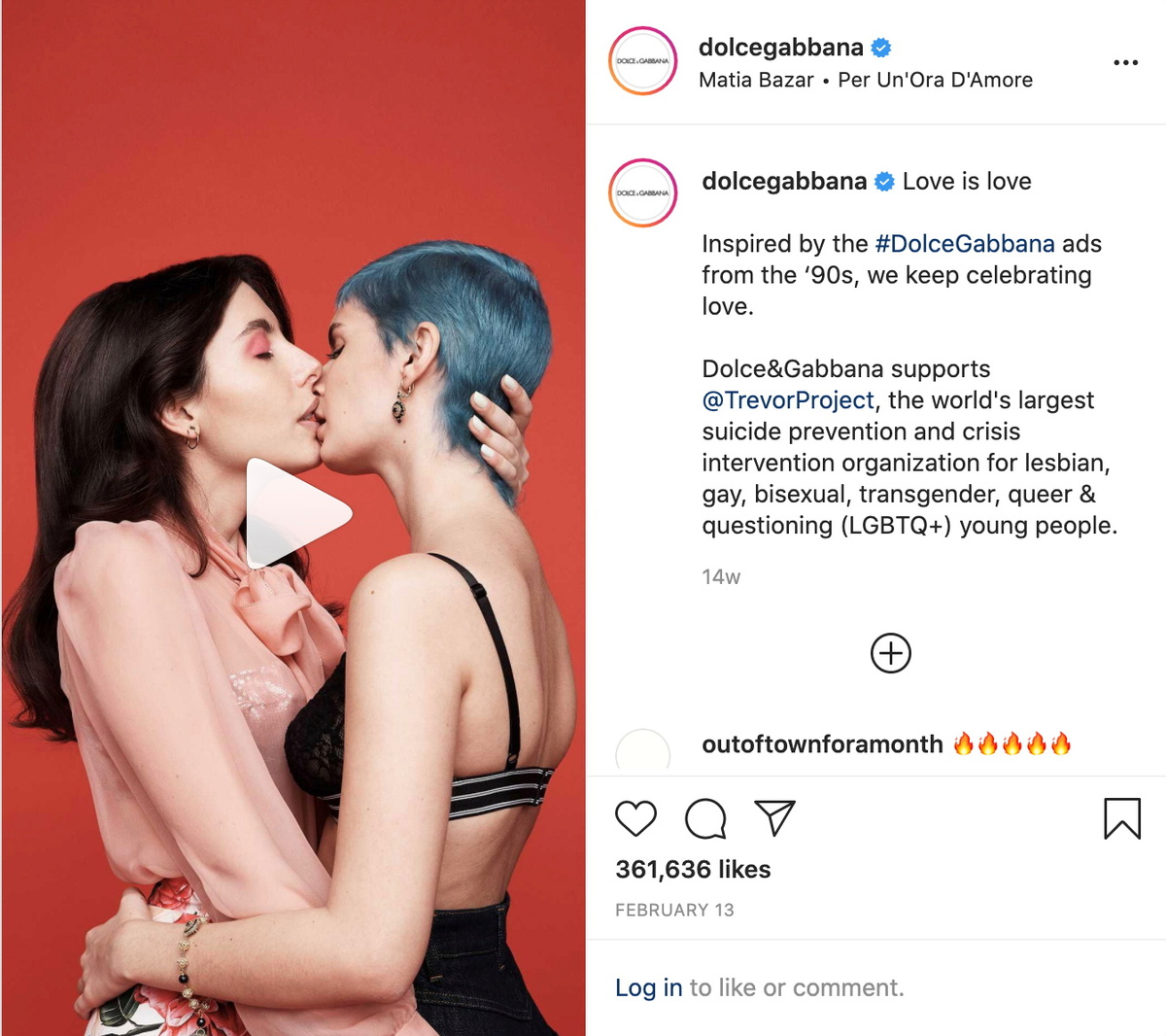 The two short videos were part of the Italian fashion house's global "Love is Love" campaign in the run-up to Valentine's Day.