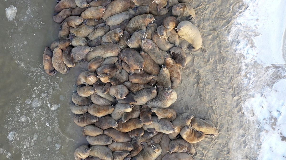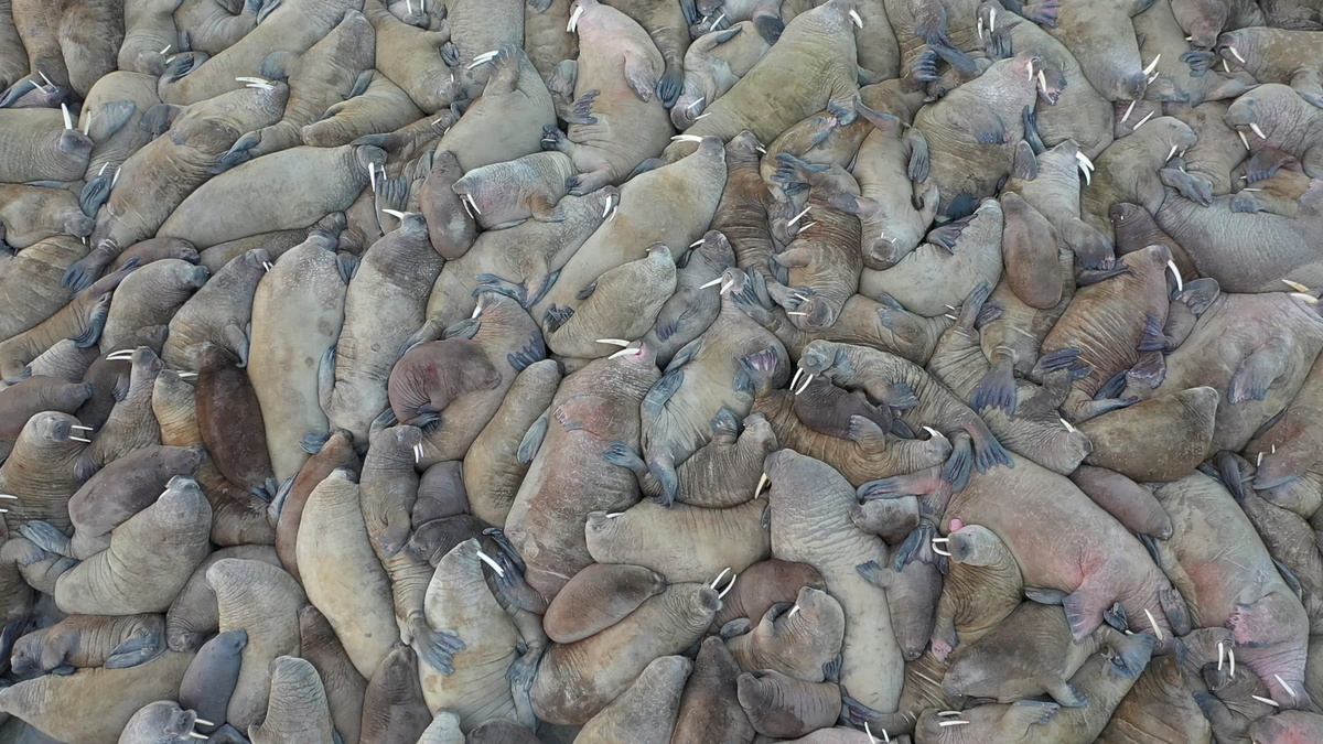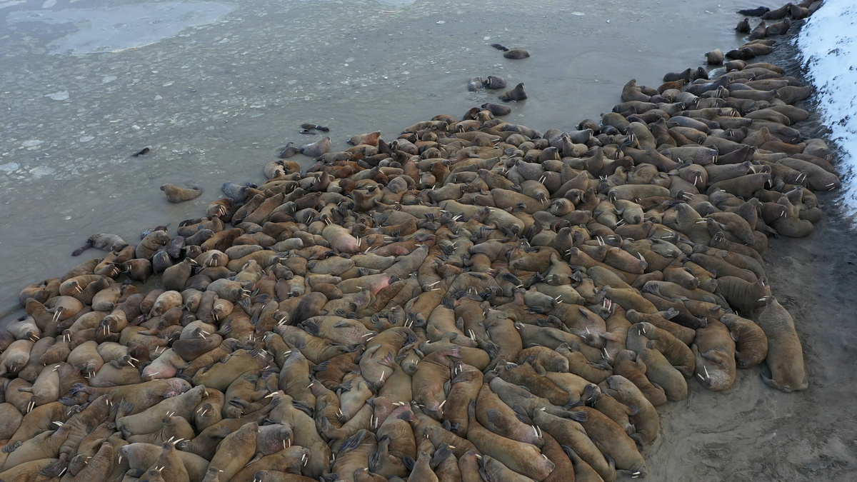 Walrus haulouts have traditionally been located on drifting sea ice or on Arctic islands, scientists say. But warmer climate cycles mean sea ice is shrinking and habitats are under threat from oil and gas exploration and more Arctic shipping.
