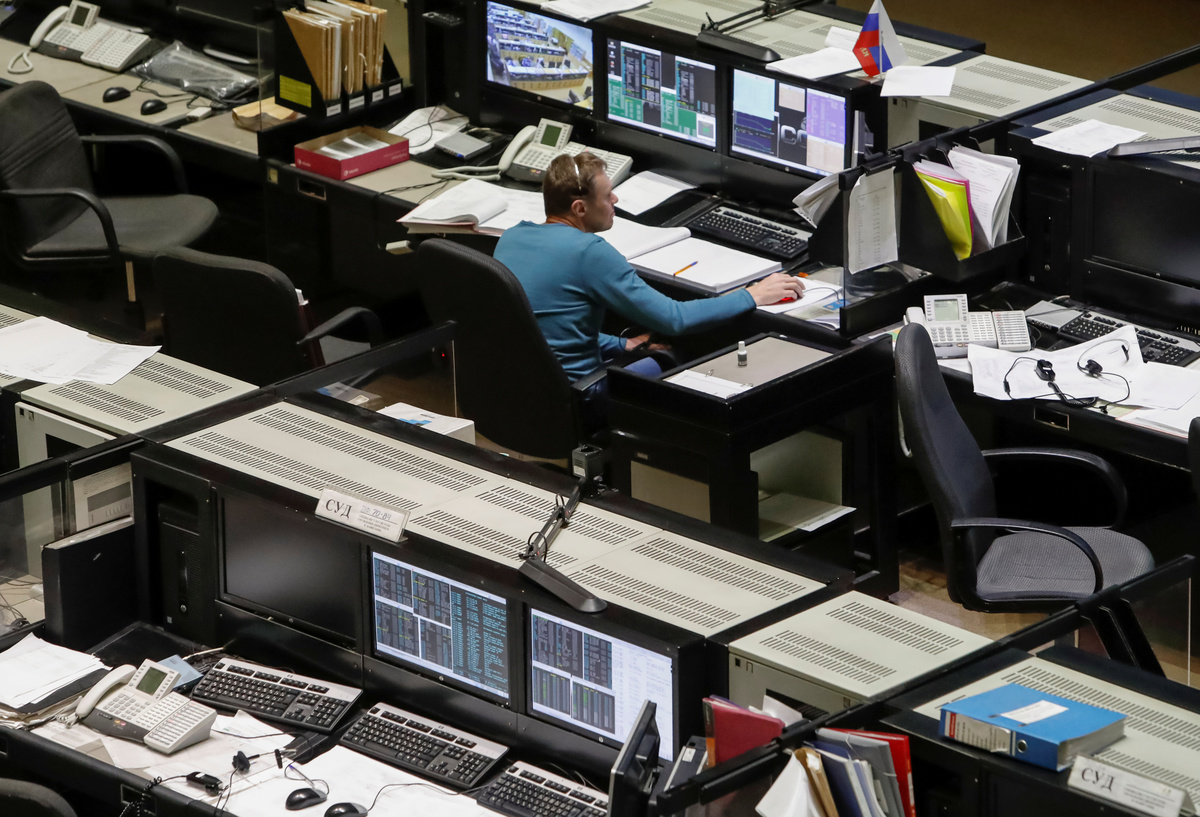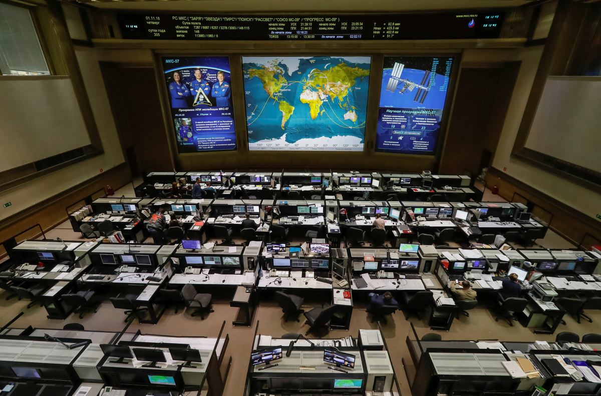 A specialist works in the Russian Mission Control Center before a news conference on the results of the investigation on the failed Soyuz rocket launch on October 11, in Korolev, outside Moscow, Russia November 1, 2018. REUTERS/Sergei Karpukhin