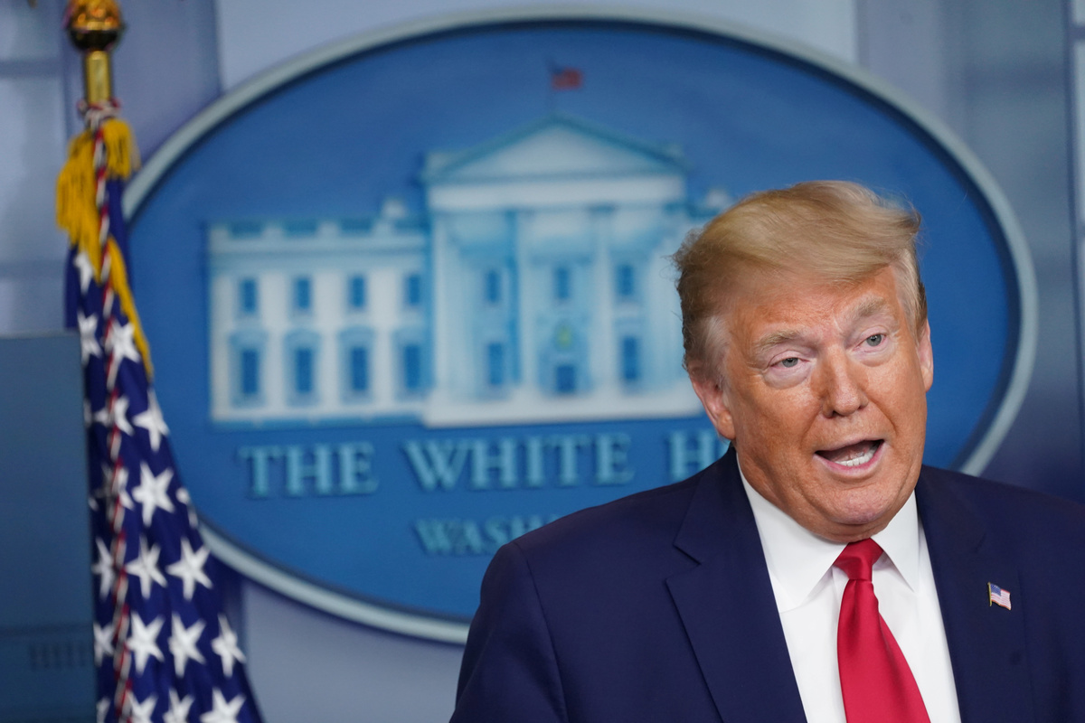 FILE PHOTO: U.S. President Donald Trump addresses the daily coronavirus task force briefing at the White House in Washington, U.S., April 6, 2020. REUTERS/Kevin Lamarque