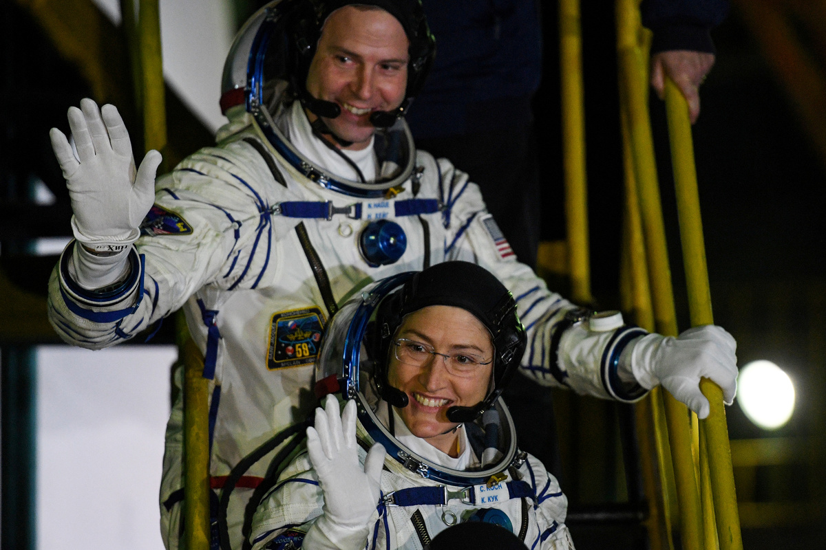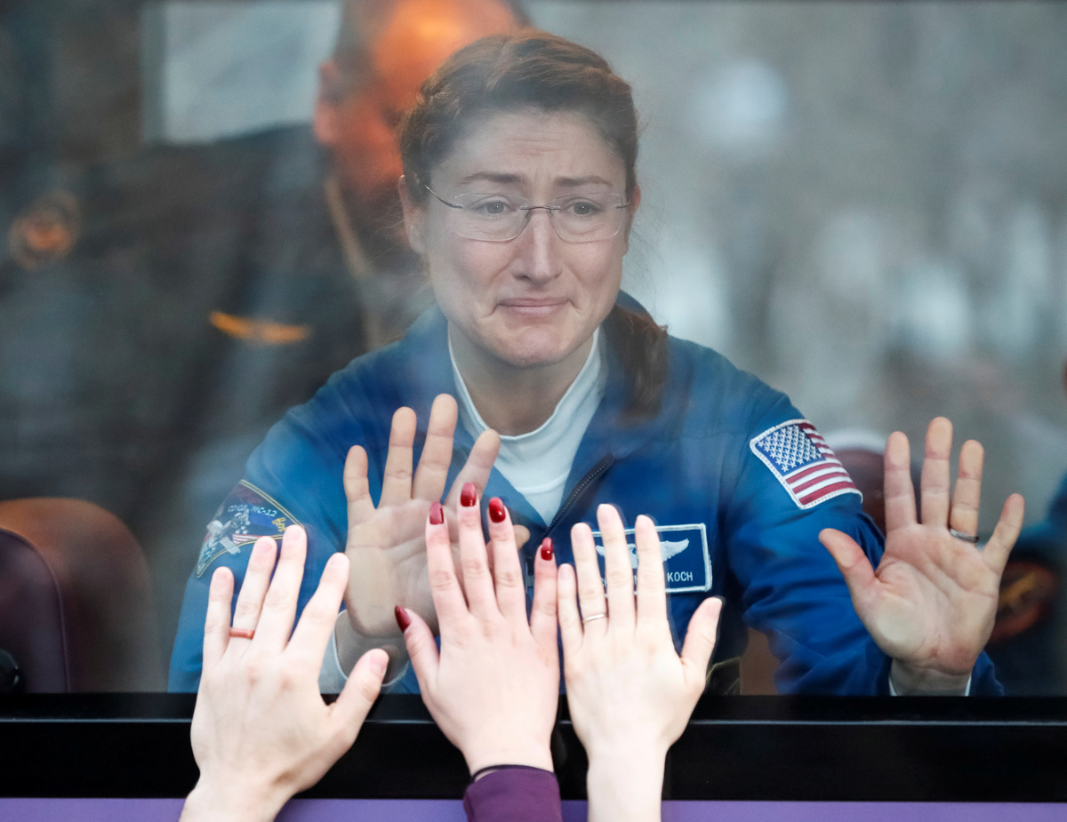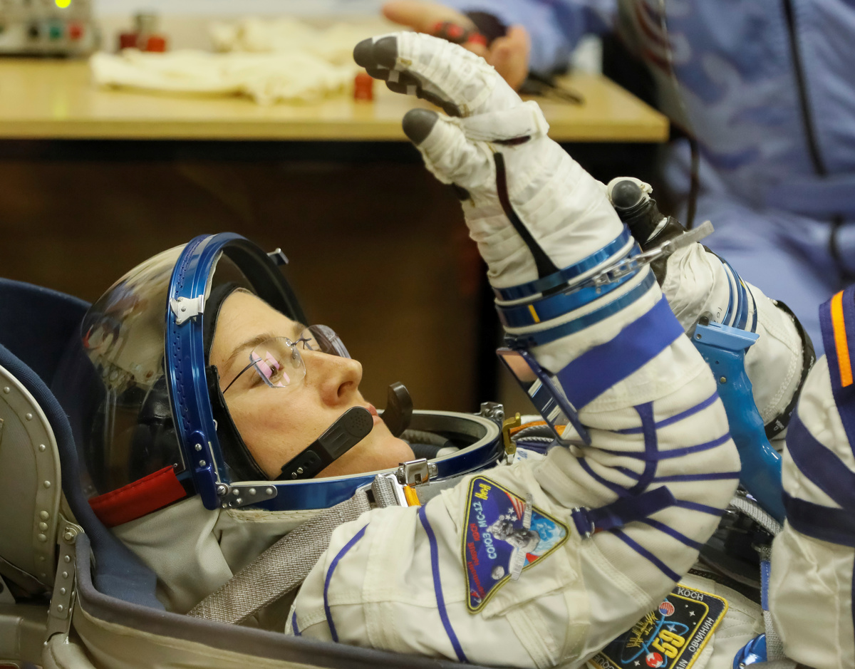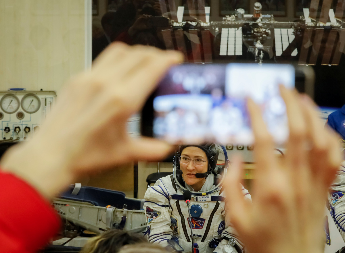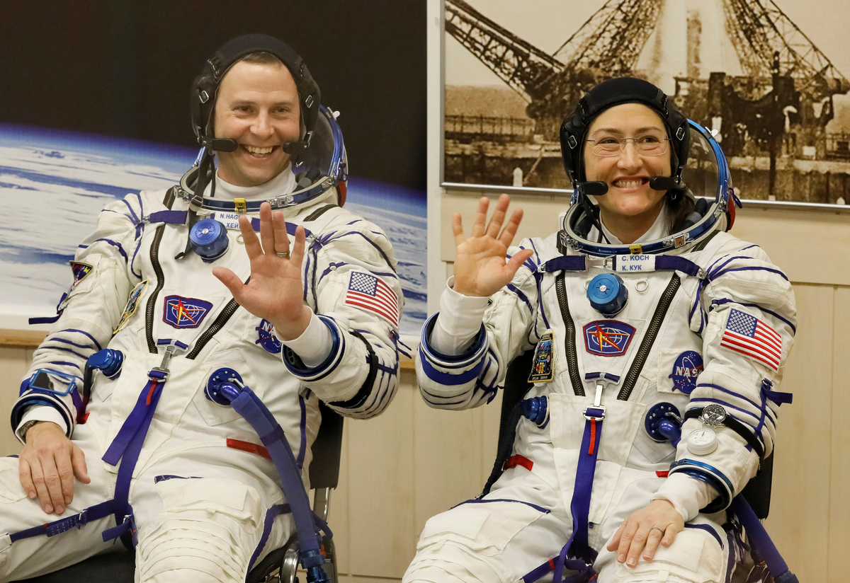 The International Space Station (ISS) crew members Aleksey Ovchinin of Russia, Nick Hague and Christina Koch of the U.S. walk shortly before leaving to board the spacecraft at the Baikonur Cosmodrome, Kazakhstan March 14, 2019. REUTERS/Shamil ZhumatovThe International Space Station (ISS) crew member Christina Koch of the U.S. reacts in a bus before leaving for pre-flight preparation at the Baikonur Cosmodrome, Kazakhstan March 14, 2019. REUTERS/Shamil Zhumatov Photographers take pictures as the Soyuz MS-12 spacecraft carrying the crew formed of Aleksey Ovchinin of Russia, Nick Hague and Christina Koch of the U.S. blasts off to the International Space Station (ISS) from the launchpad at the Baikonur Cosmodrome, Kazakhstan March 15, 2019. REUTERS/Shamil ZhumatovThe Soyuz MS-12 spacecraft carrying the crew formed of Aleksey Ovchinin of Russia, Nick Hague and Christina Koch of the U.S. blasts off to the International Space Station (ISS) from the launchpad at the Baikonur Cosmodrome, Kazakhstan March 15, 2019. REUTERS/Shamil ZhumatovThe Soyuz MS-12 spacecraft carrying the crew formed of Aleksey Ovchinin of Russia, Nick Hague and Christina Koch of the U.S. blasts off to the International Space Station (ISS) from the launchpad at the Baikonur Cosmodrome, Kazakhstan March 15, 2019. REUTERS/Shamil ZhumatovThe Soyuz MS-12 spacecraft carrying the crew formed of Aleksey Ovchinin of Russia, Nick Hague and Christina Koch of the U.S. blasts off to the International Space Station (ISS) from the launchpad at the Baikonur Cosmodrome, Kazakhstan March 15, 2019. REUTERS/Shamil ZhumatovThe Soyuz MS-12 spacecraft carrying the crew formed of Aleksey Ovchinin of Russia, Nick Hague and Christina Koch of the U.S. blasts off to the International Space Station (ISS) from the launchpad at the Baikonur Cosmodrome, Kazakhstan March 15, 2019. REUTERS/Shamil ZhumatovThe International Space Station (ISS) crew members Nick Hague and Christina Koch of the U.S. wave after donning space suits shortly before their launch at the Baikonur Cosmodrome, Kazakhstan March 14, 2019. REUTERS/Shamil ZhumatovThe International Space Station (ISS) crew member Nick Hague of the U.S. looks on during space suit check shortly before launch at the Baikonur Cosmodrome, Kazakhstan March 14, 2019. REUTERS/Shamil ZhumatovThe International Space Station (ISS) crew member Christina Koch of the U.S. speaks after donning space suit shortly before launch at the Baikonur Cosmodrome, Kazakhstan March 14, 2019. REUTERS/Shamil ZhumatovThe International Space Station (ISS) crew member Nick Hague of the U.S. looks on during space suit check shortly before launch at the Baikonur Cosmodrome, Kazakhstan March 14, 2019. REUTERS/Shamil ZhumatovThe International Space Station (ISS) crew member Aleksey Ovchinin of Russia is assisted during his space suit check at the Baikonur Cosmodrome, Kazakhstan March 14, 2019. REUTERS/Shamil ZhumatovThe International Space Station (ISS) crew member Christina Koch of the U.S. waves from a bus shortly before leaving to board the spacecraft at the Baikonur Cosmodrome, Kazakhstan March 14, 2019. REUTERS/Shamil ZhumatovThe International Space Station (ISS) crew member Aleksey Ovchinin of Russia waves before his space suit check at the Baikonur Cosmodrome, Kazakhstan March 14, 2019. REUTERS/Shamil ZhumatovRussia's Roscosmos space agency chief Dmitry Rogozin greets the International Space Station (ISS) crew members astronaut Aleksey Ovchinin of Russia, Nick Hague and Christina Koch of the U.S. shortly before their departure to board the spacecraft at the Baikonur Cosmodrome, Kazakhstan March 14, 2019. REUTERS/Shamil ZhumatovThe International Space Station (ISS) crew members Aleksey Ovchinin of Russia boards the Soyuz MS-12 spacecraft for the launch at the Baikonur Cosmodrome, Kazakhstan March 14, 2019. Kirill Kudryavtsev/Pool via REUTERSThe International Space Station (ISS) crew members Nick Hague and Christina Koch of the U.S. board the Soyuz MS-12 spacecraft for the launch at the Baikonur Cosmodrome, Kazakhstan March 14, 2019. Kirill Kudryavtsev/Pool via REUTERSThe International Space Station (ISS) crew member Christina Koch of the U.S. looks on during space suit check shortly before launch at the Baikonur Cosmodrome, Kazakhstan March 14, 2019. REUTERS/Shamil ZhumatovThe International Space Station (ISS) crew members Aleksey Ovchinin of Russia, Nick Hague and Christina Koch of the U.S. talk after donning space suits shortly before their launch at the Baikonur Cosmodrome, Kazakhstan March 14, 2019. REUTERS/Shamil ZhumatovThe International Space Station (ISS) crew member Nick Hague of the U.S. gestures after donning space suits shortly before launch at the Baikonur Cosmodrome, Kazakhstan March 14, 2019. REUTERS/Shamil Zhumatov