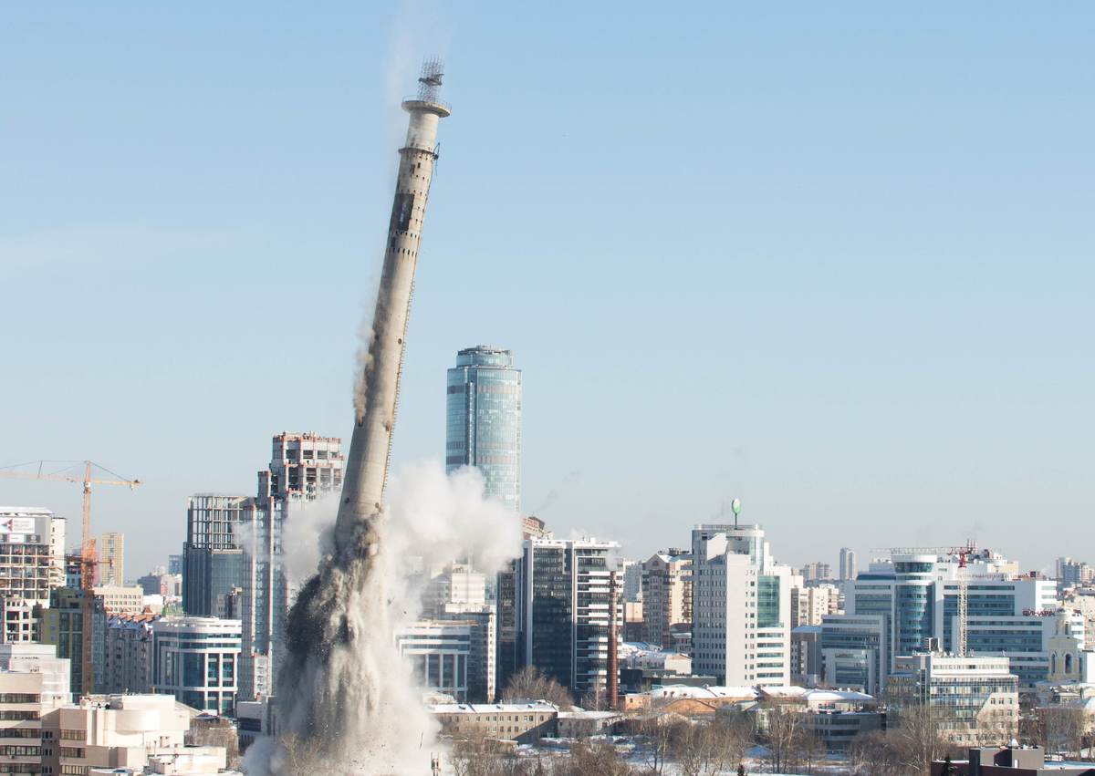 YEKATERINBURG/MOSCOW (Reuters) - As Russia hurries to spruce up its venues for this year's soccer World Cup, the Urals city of Yekaterinburg on Saturday blew up its most famous landmark -- a rusty, half-finished Soviet-era television tower.