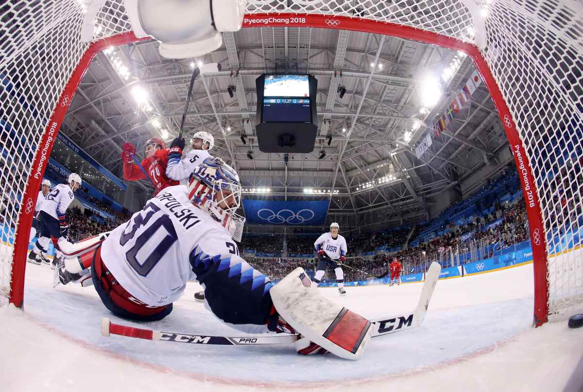 Ryan Donato, who scored two goals against the Slovaks on Friday, ripped a wrist shot off the cross bar behind Russian goaltender Vasili Koshechkin, and the Americans caught a couple of other unlucky posts.
