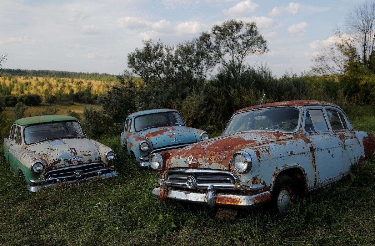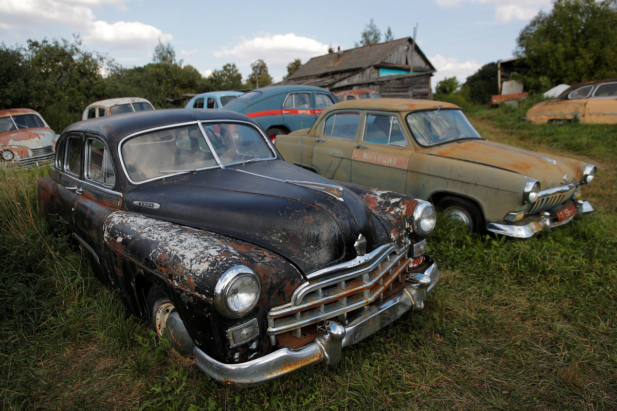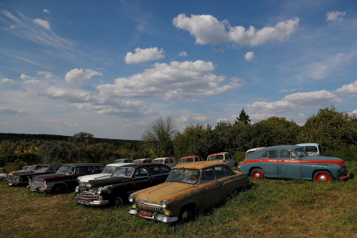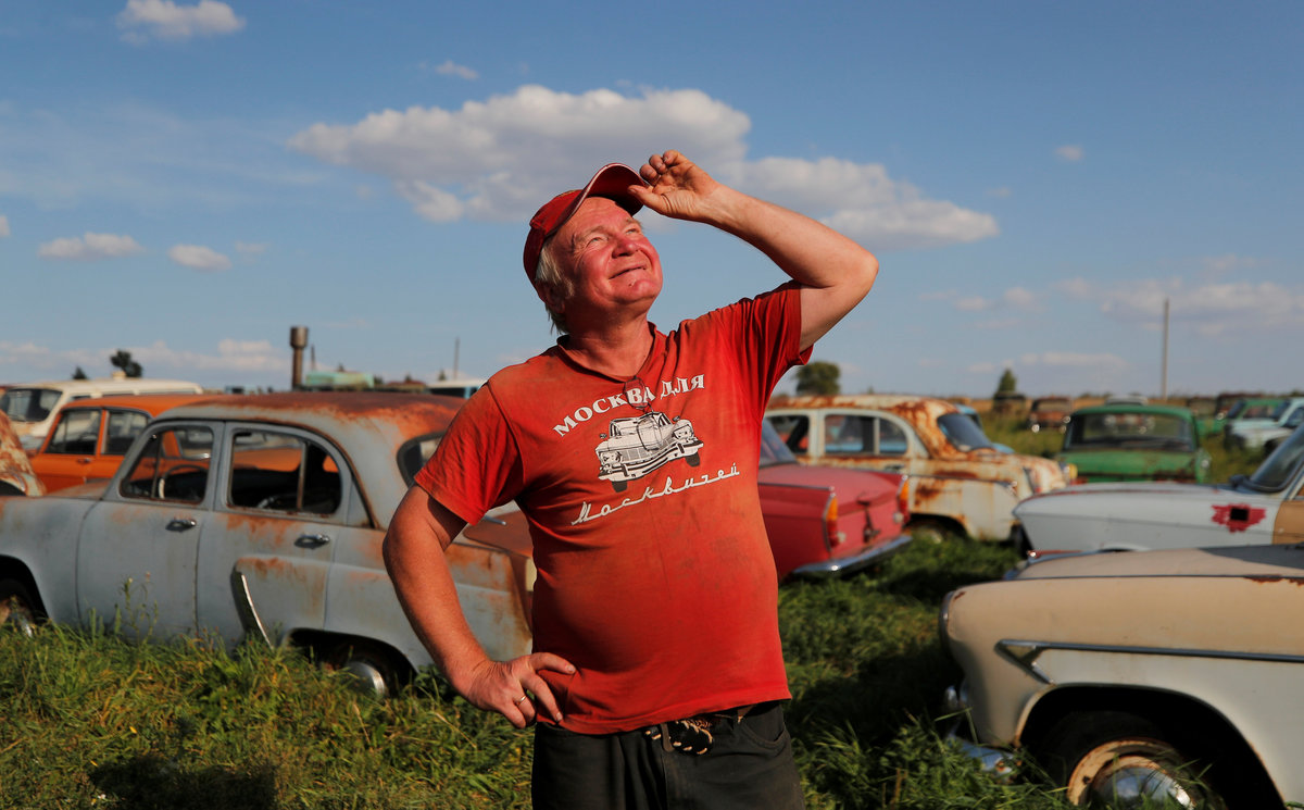 Retro cars owned by retired mechanic Mikhail Krasinets are displayed at an open-air museum of Soviet-era vehicles in the village of Chernousovo, Tula region, Russia August 28, 2018. REUTERS/Maxim ShemetovRetro cars owned by retired mechanic Mikhail Krasinets are displayed at an open-air museum of Soviet-era vehicles in the village of Chernousovo, Tula region, Russia August 28, 2018. REUTERS/Maxim ShemetovFormer auto racer and retro car collector, Mikhail Krasinets looks on at an open-air museum of Soviet-made vehicles in the village of Chernousovo, Tula region, Russia August 28, 2018. REUTERS/Maxim Shemetov