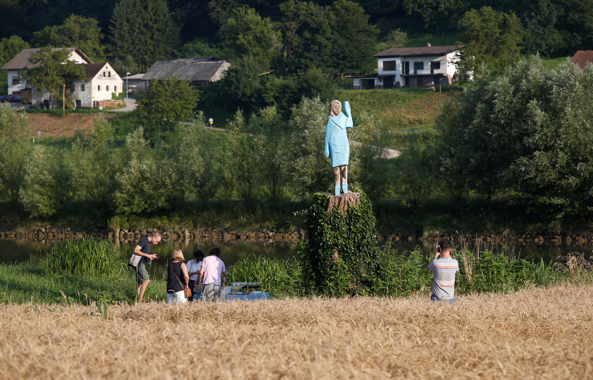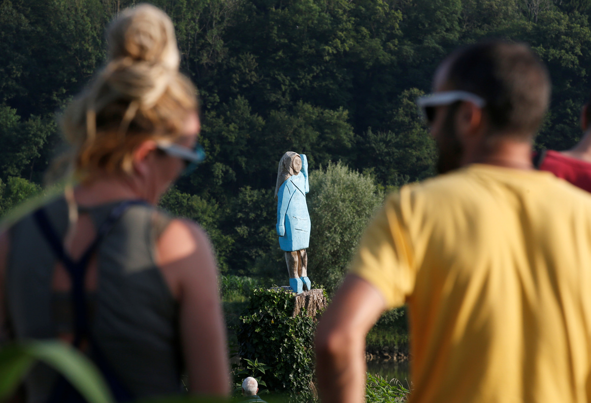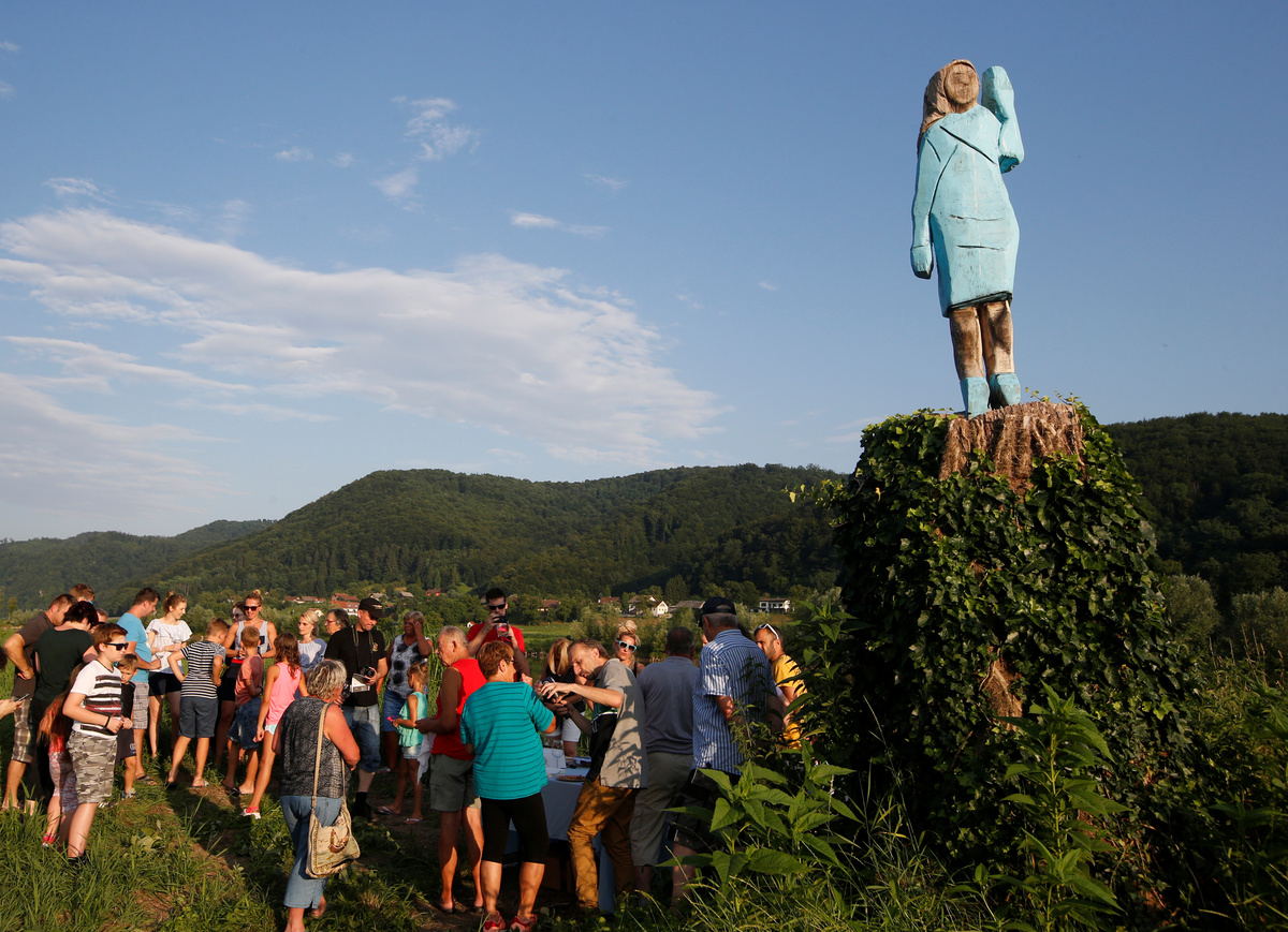 Commissioned by Berlin-based American artist Brad Downey and carved with a chainsaw by local folk artist Ales Zupevc, the statue serves as a - perhaps wry - accompaniment to Downey's exhibition in the capital Ljubljana exploring Melania's roots in the small Alpine country.