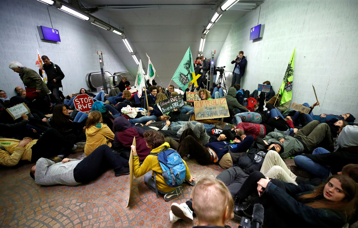 Demonstrators, including members of the Fridays for Future movement and students skipping school, waved placards reading "Brown coal craziness - we cannot afford it any longer" and "The climate punishes latecomers".