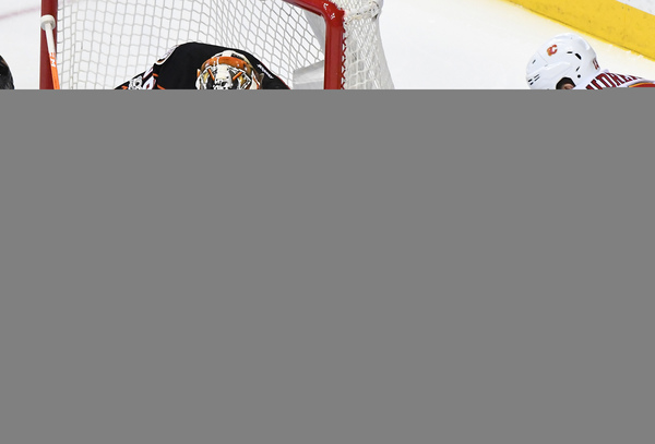 He made a crucial left pad save on a shot from Calgary's Jjohnny Gaudreau with 17.2 seconds left, as the Ducks killed off a two-man advantage to end the game.