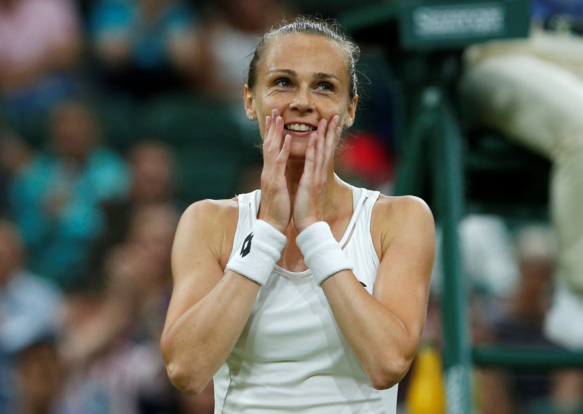 LONDON (Reuters) - Unseeded Slovakian Magdalena Rybarikova stormed into the Wimbledon semi-finals by routing Coco Vandeweghe 6-3 6-3 on Tuesday in a rain-plagued match that was halted for hours before being moved beneath the roof of Centre Court.