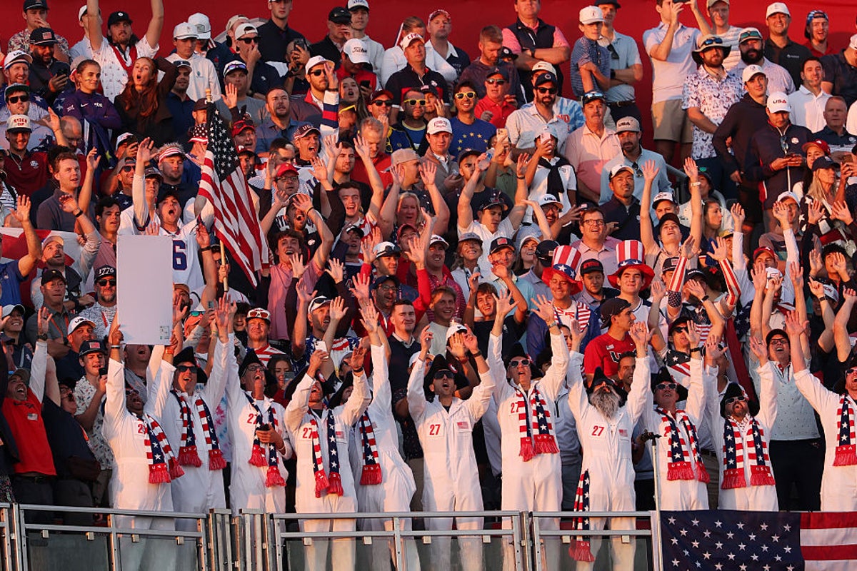 “Chants of “you’re getting sacked in the morning” are directed at Keegan Bradley around the 18th green, followed by “you’re not singing anymore”. Jubilant European fans have taken over here.