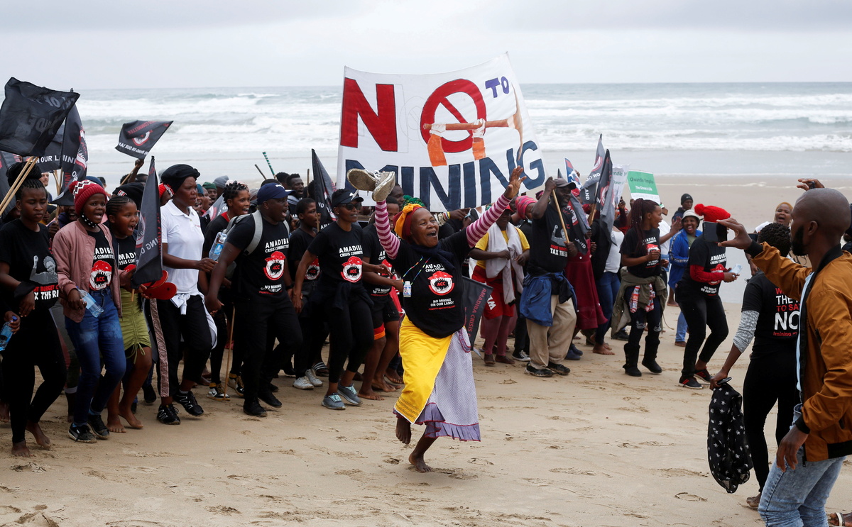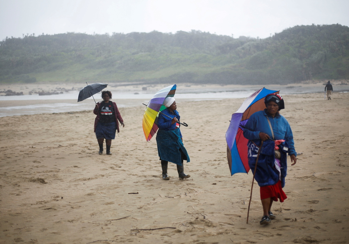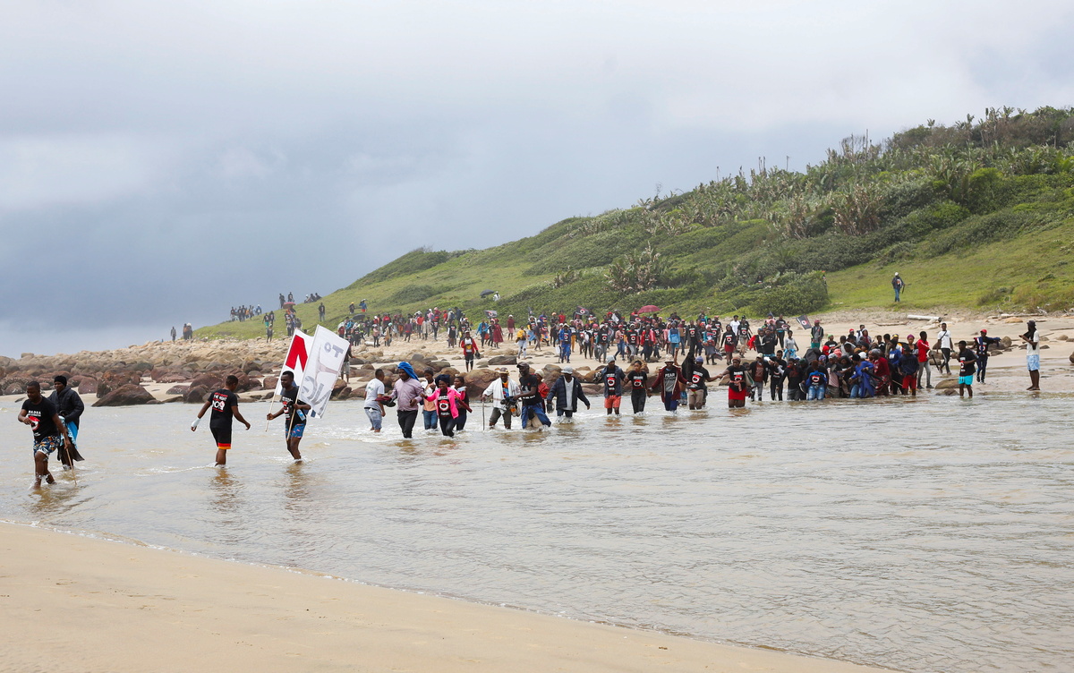 At least 1,000 demonstrators gathered on a beach near Port Edward, a Reuters TV correspondent saw.