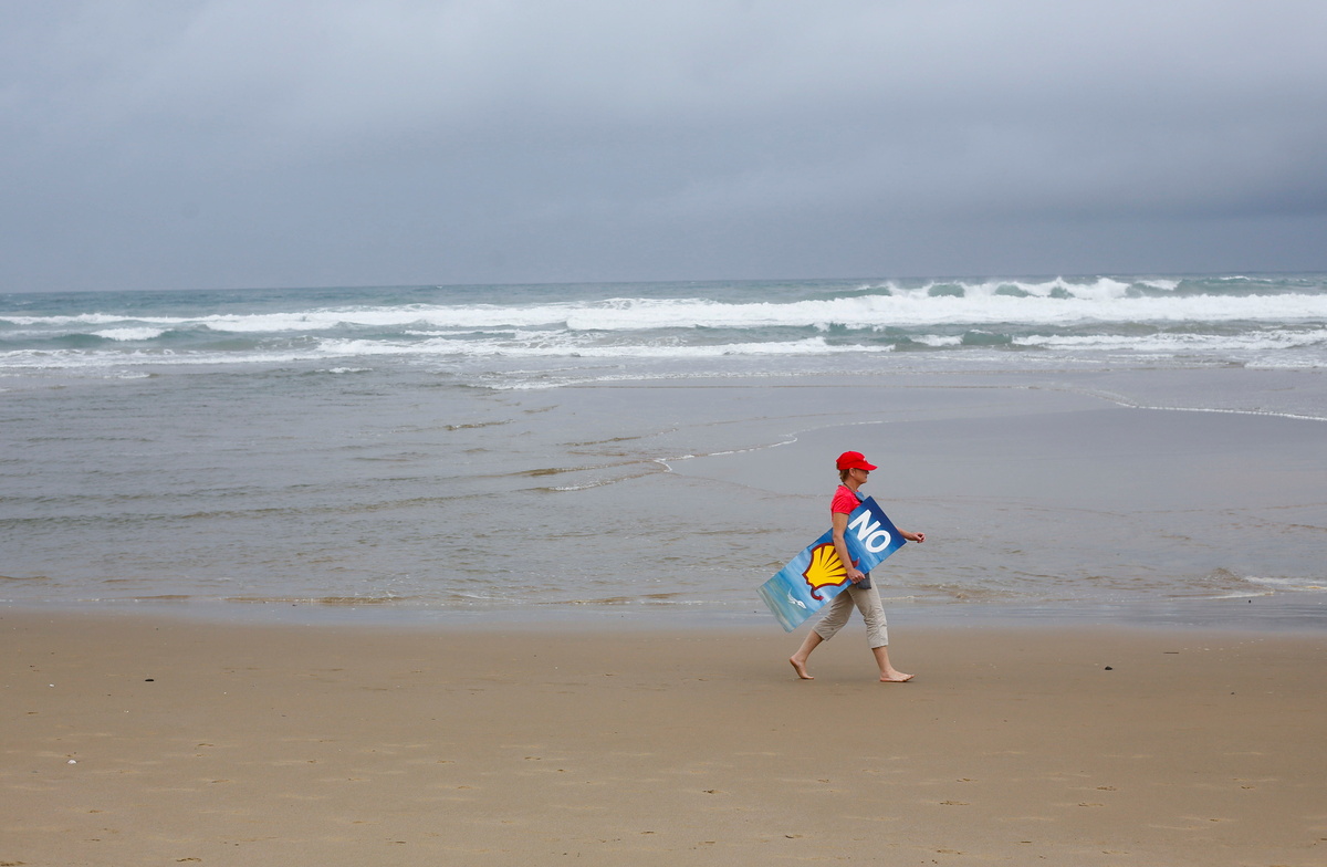 "It's just absolutely horrendous that they are even considering this. Look around you?" said demonstrator Kas Wilson, indicating an unspoilt stretch of beach. "It's unacceptable and ... we will stop it."