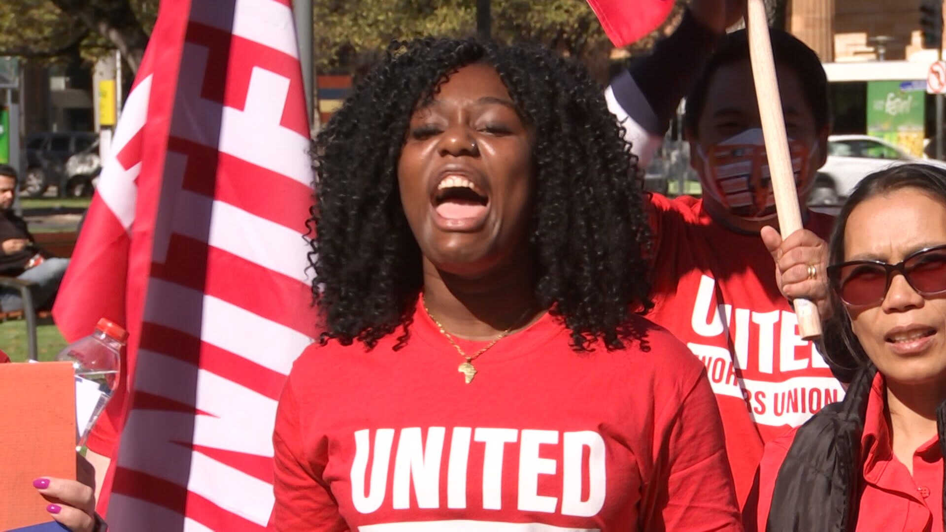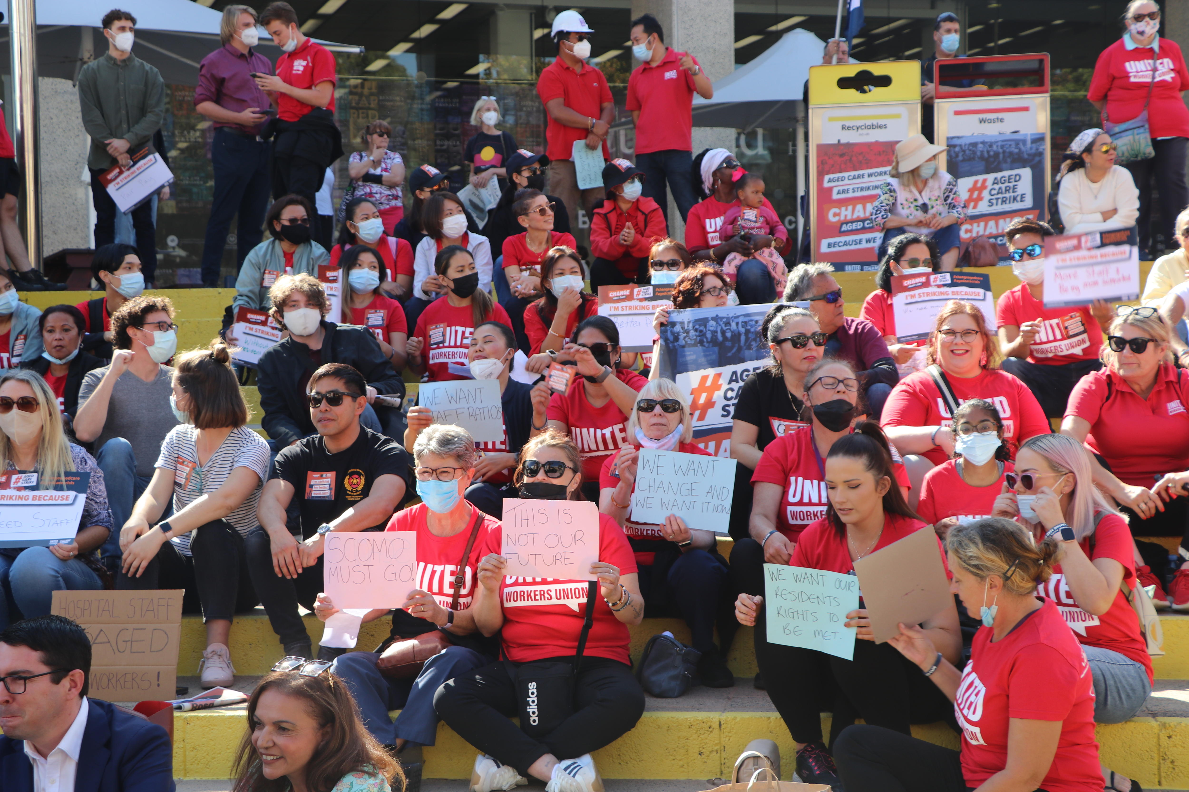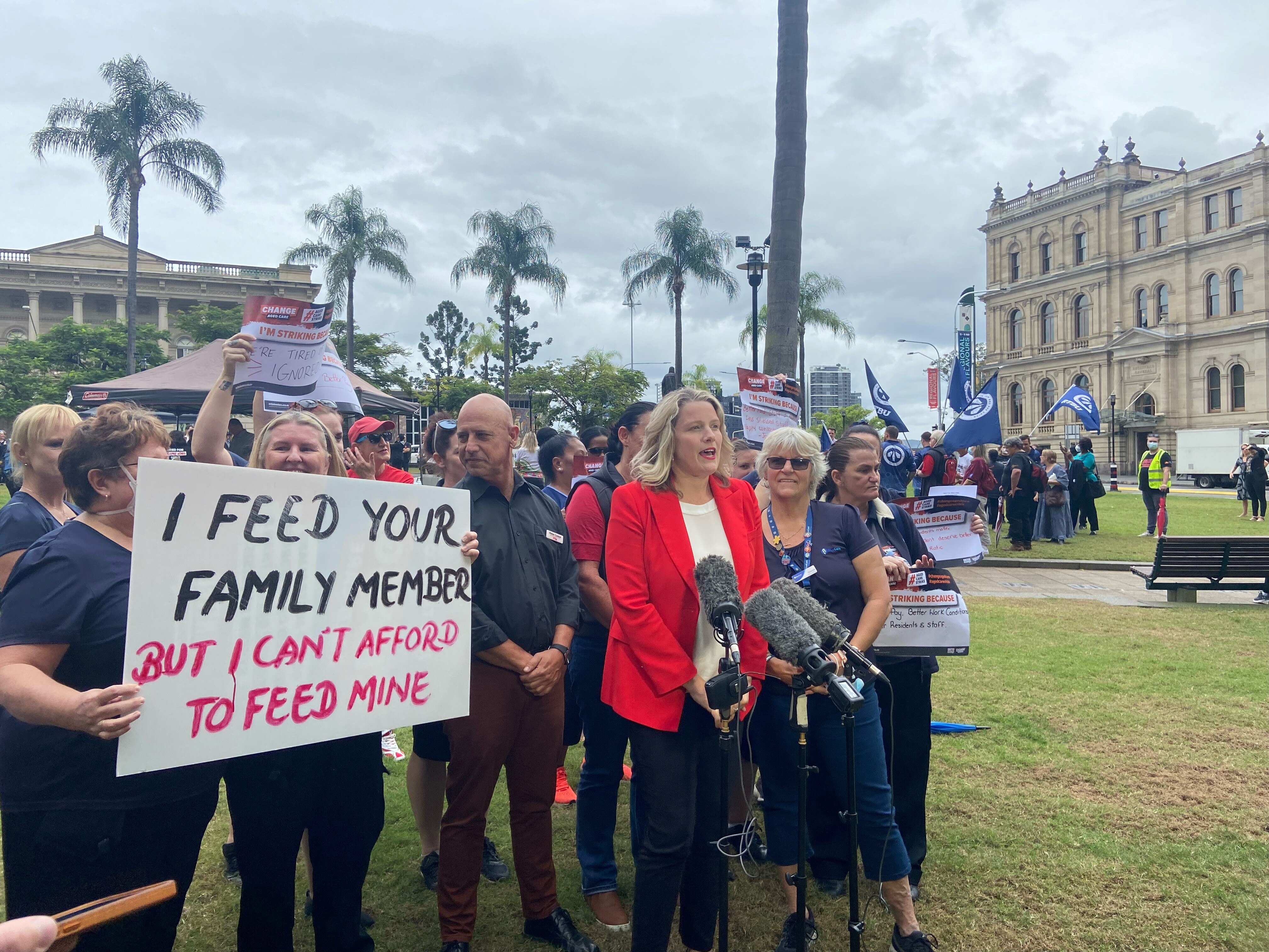 In Queensland, about 300 aged care workers walked off the job and gathered in the Brisbane CBD, protesting for a 25 per cent pay increase and better conditions.