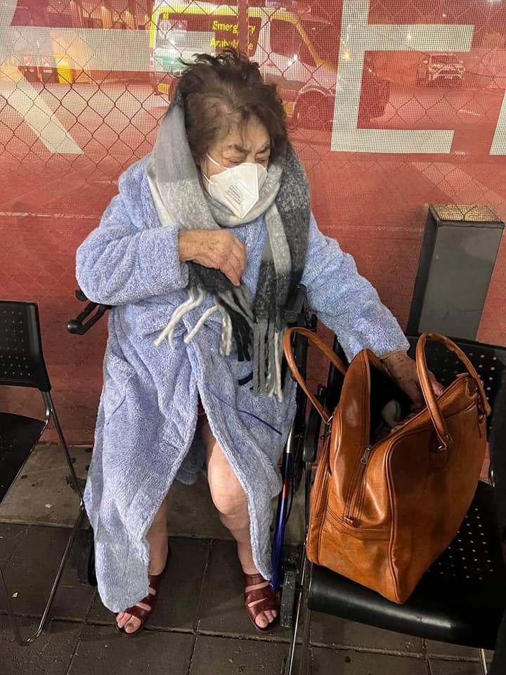 Once there, she was forced to wait for two hours in a tent outside where it was 12 degrees Celsius because the emergency department was full.