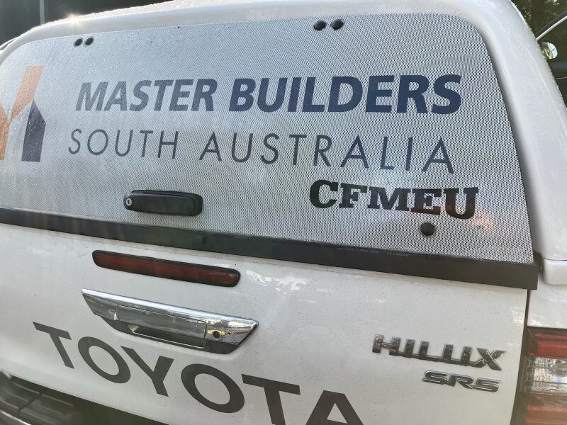Mr Frogley confirmed to ABC Radio Adelaide that cars had been damaged on Friday evening but would not go into details regarding CFMEU stickers allegedly being placed on the vehicles.