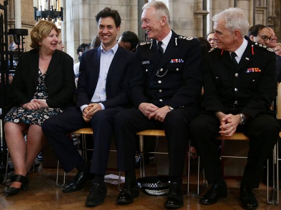 Mr Miliband, the former Labour leader, was sitting in the front row alongside Metropolitan Police commissioner Sir Bernard Hogan-Howe.