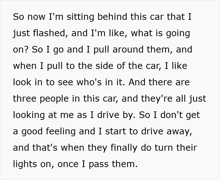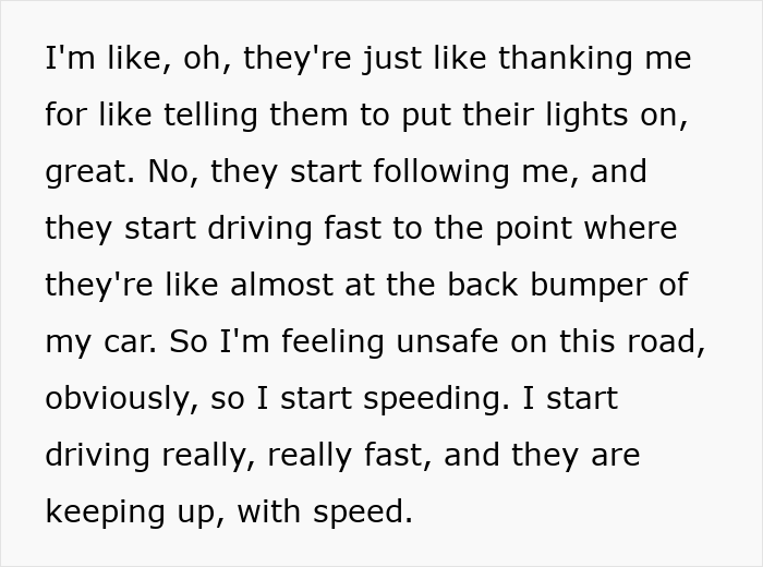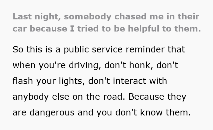Another creator had a car chase him after he flashed his headlights at them