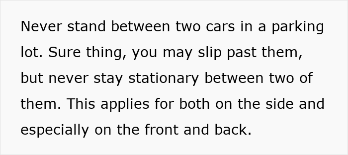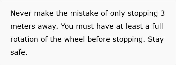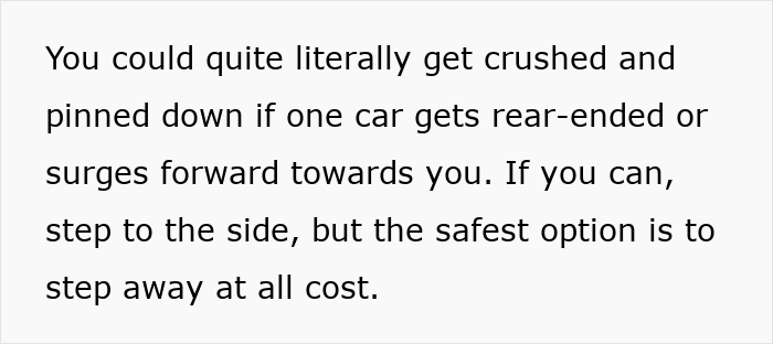 The creator also emphasized correct braking techniques and warned folks not to stand between parked cars