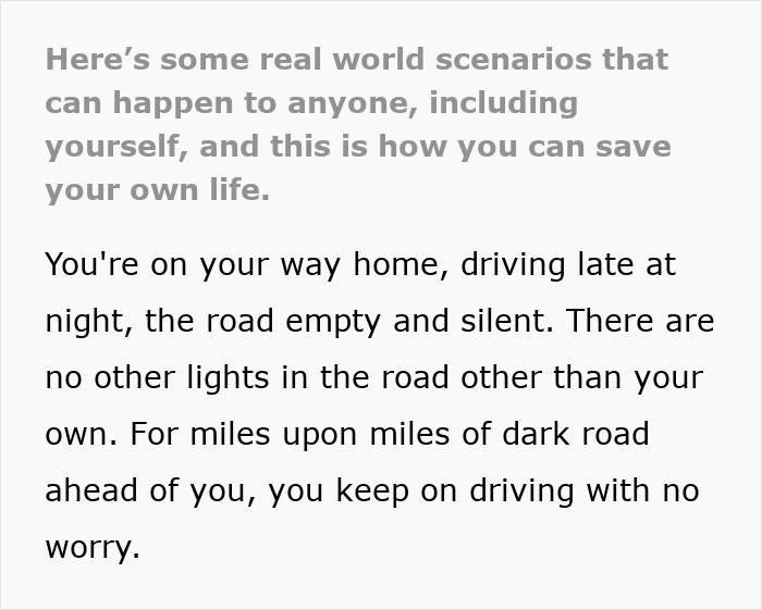 This person recently shared some important safety tips for when you’re on the road