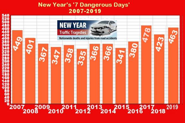 The government's road safety promotion campaign during the New Year holidays, better known as the "seven dangerous days", ended with mixed results: the number of accidents fell slightly but the death toll was up to 463, which is a 9.5% increase from last year's figures.