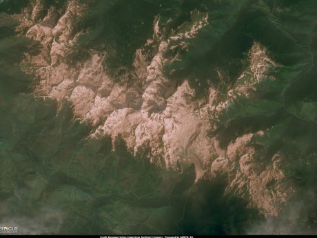 The EU’s Directorate-General for Defence Industry and Space tweeted a “very rare” picture of the mountain resort of Mont d’Olmes in the Pyrenees covered by a layer of sand and dust.