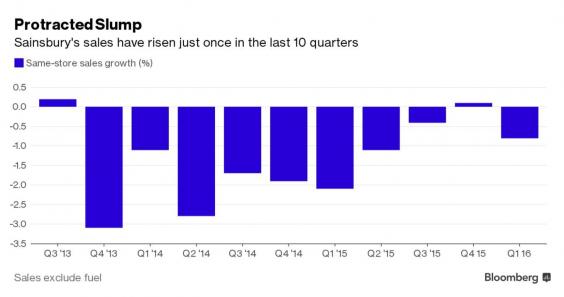 “We have made a solid start to the year,” Sainsbury Chief Executive Officer Mike Coupe said in the statement. “Market conditions remain challenging. Food price deflation continues to impact our sales and pressures on pricing mean the market will remain competitive for the foreseeable future.”