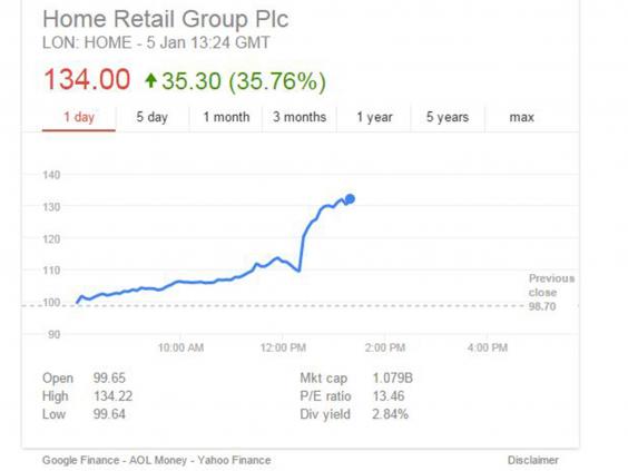 Less than an hour after the announcement, shares in Home Retail Group had gone up more than 35 per cent.