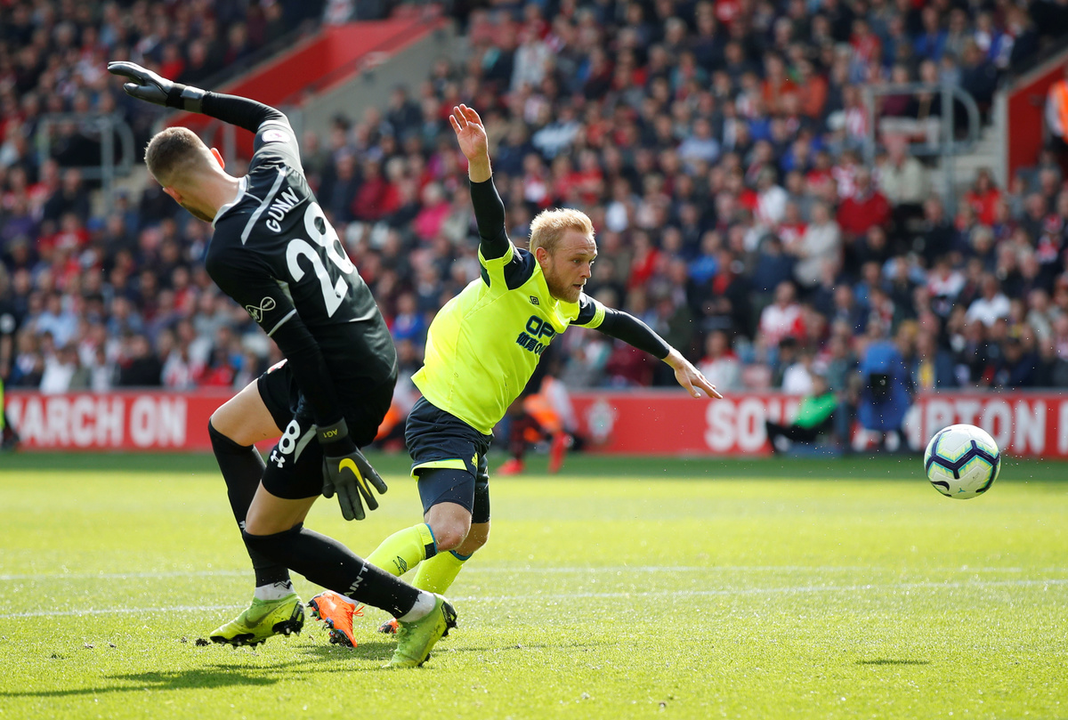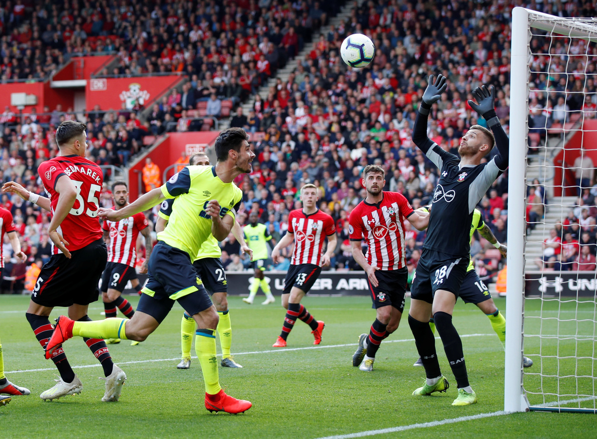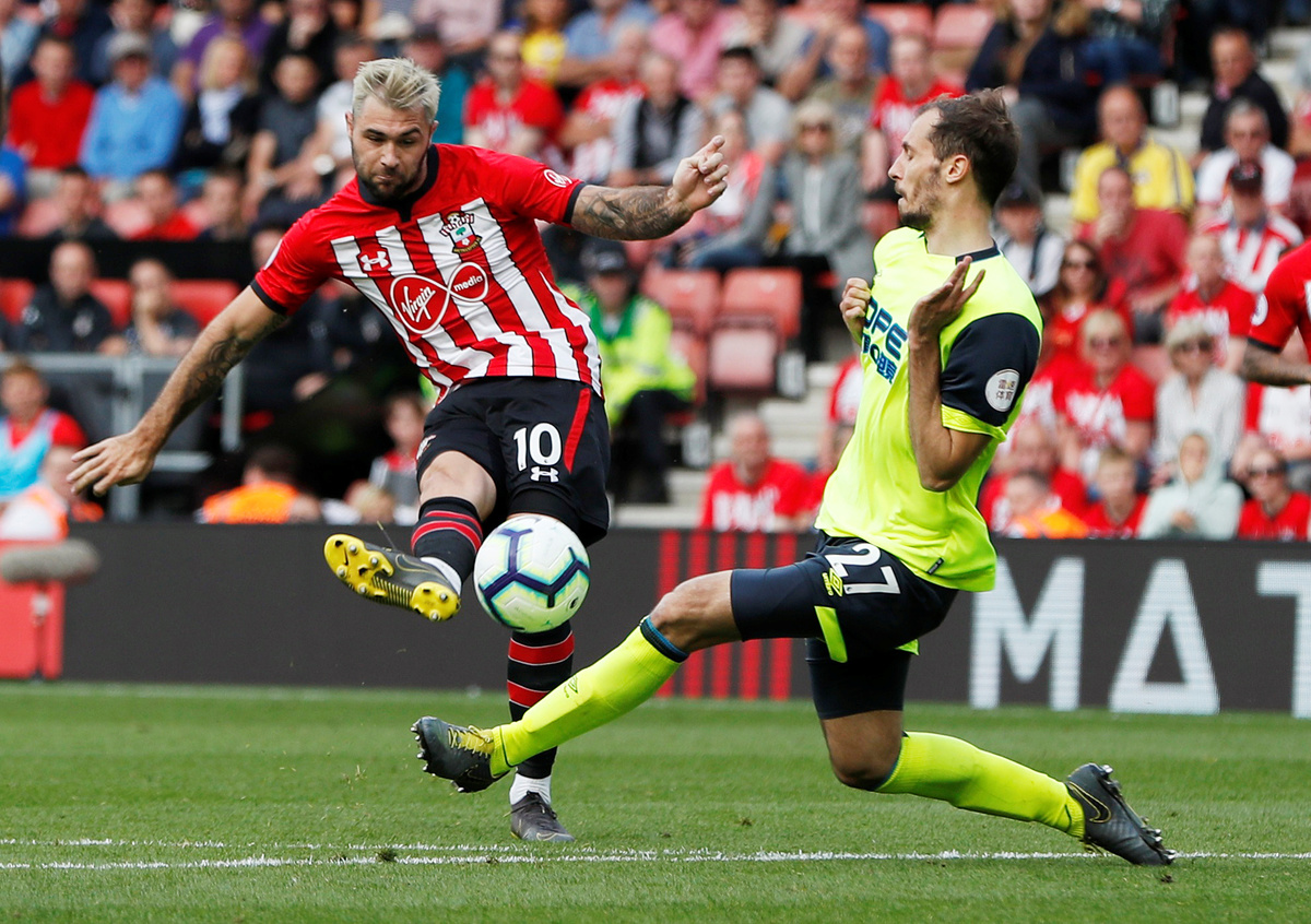 Soccer Football - Premier League - Southampton v Huddersfield Town - St Mary's Stadium, Southampton, Britain - May 12, 2019 Huddersfield Town's Alex Pritchard scores their first goal REUTERS/David Klein Soccer Football - Premier League - Southampton v Huddersfield Town - St Mary's Stadium, Southampton, Britain - May 12, 2019 Southampton manager Ralph Hasenhuttl gestures to fans after the match REUTERS/David Klein Soccer Football - Premier League - Southampton v Huddersfield Town - St Mary's Stadium, Southampton, Britain - May 12, 2019 Southampton's Ryan Bertrand and Oriol Romeu in action with Huddersfield Town's Jonathan Hogg REUTERS/David Klein Soccer Football - Premier League - Southampton v Huddersfield Town - St Mary's Stadium, Southampton, Britain - May 12, 2019 Southampton's Danny Ings in action with Huddersfield Town's Christopher Schindler REUTERS/David Klein E