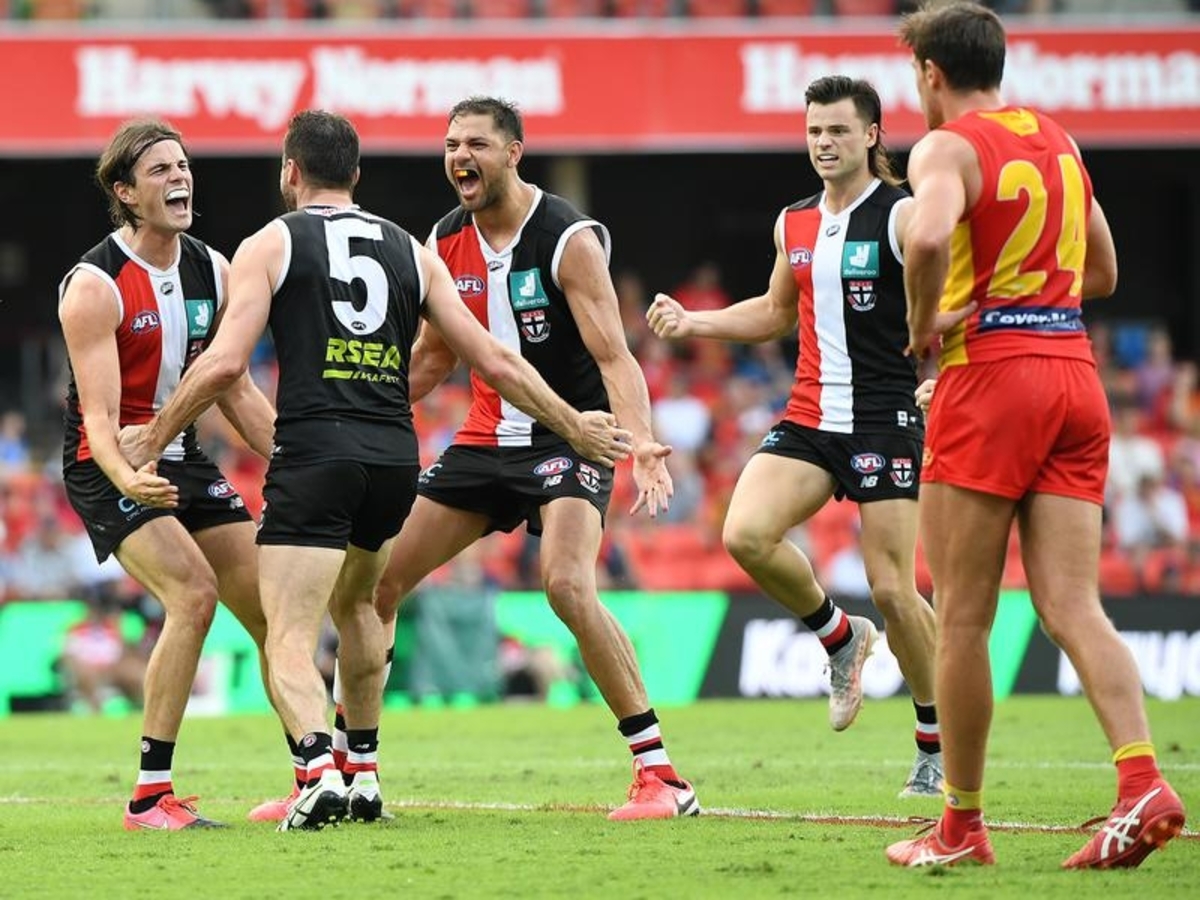 St Kilda have extended their dominance over Gold Coast Suns with a gutsy nine-point AFL win at Metricon Stadium, launching a final term comeback after a halftime melee.