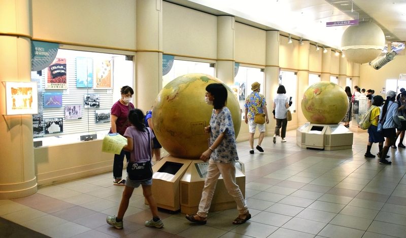 In the room housing the permanent collection, visitors learn about the history of the war and other information through exhibits donated by people from the prefecture. In the center are two globes, one depicting the prewar world in 1929 and the other illustrating the situation in 1943, when the conflict was raging. It is easy to see how drastically the world had changed by looking at the color-coded images of the colonies and territories held by various countries.