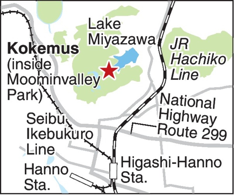 The Moominvalley Park, based on the world-famous Finnish children's story Moomin, is located on a vast land of about 7.3 hectares on the shore of Lake Miyazawa in Hanno, Saitama Prefecture. The park has a Moominhouse and a tent modeled after the one used by the popular character Snufkin. One of the four areas of the park is "Kokemus," which means "experience" in Finnish.