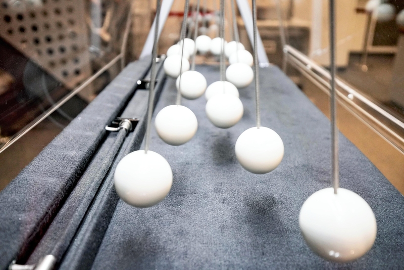 You can enjoy the "pendulum wave" phenomenon, in which a row of pendulums move as if making waves when simultaneously released. There are also tools that help visitors solve simple questions such as why objects appear in mirrors.