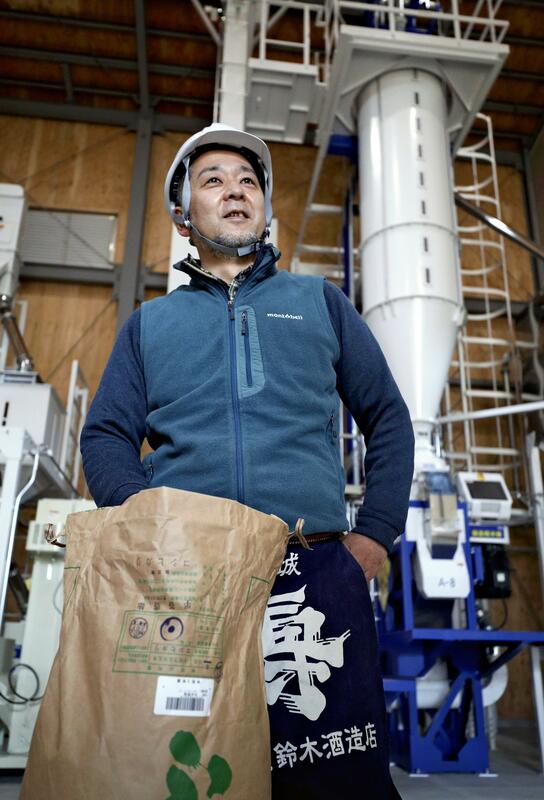 "I want to cheer Namie people up and give something back to my hometown," the brewery's president and master brewer Daisuke Suzuki, 47, said as he polished sake rice with a machine.