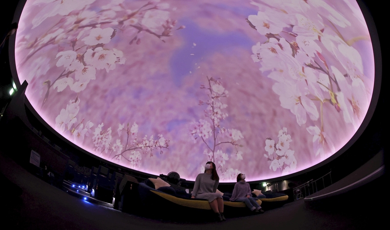 Photographs and computer-generated imagery of "someiyoshino" cherry blossoms have filled the planetarium's dome-shaped screen, which measures nearly 18 meters in diameter, during the event.